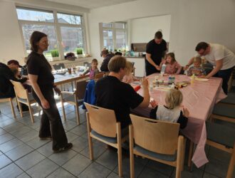 Osterdekoration basteln unter fachkundiger Anleitung stand am Sonntagnachmittag, 22. März, für fünf Väter mit acht…