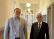 Im Hintergrund verfolgen Peter Pawlicek (v.l.), Ministerin Dorothee Feller, Oberbürgermeister Matthias Buschfeld und Bezirksbürgermeister von…