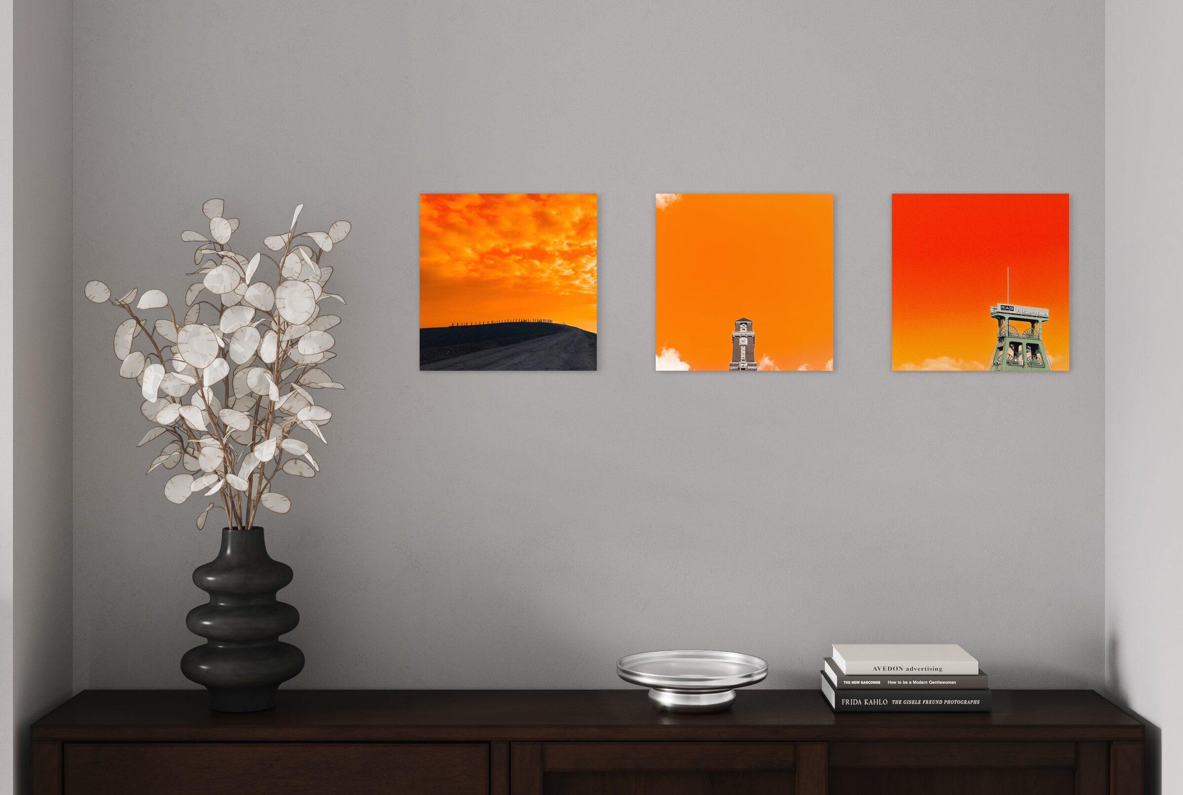 Landmarken wie die Halde Haniel und das Tetraeder oder der historische Rathausturm bieten einmalige Perspektiven, die der Bottroper Nolin Wischermann nun festgehalten hat und ab sofort als Drucke in verschiedenen Größen auf einer 5mm starken Leichtschaumplatte anbietet. Einige seiner Fotos hat er innerhalb seiner Serie “orange.bottrop” digital nachkoloriert und leuchtend orange erstrahlen lassen.
