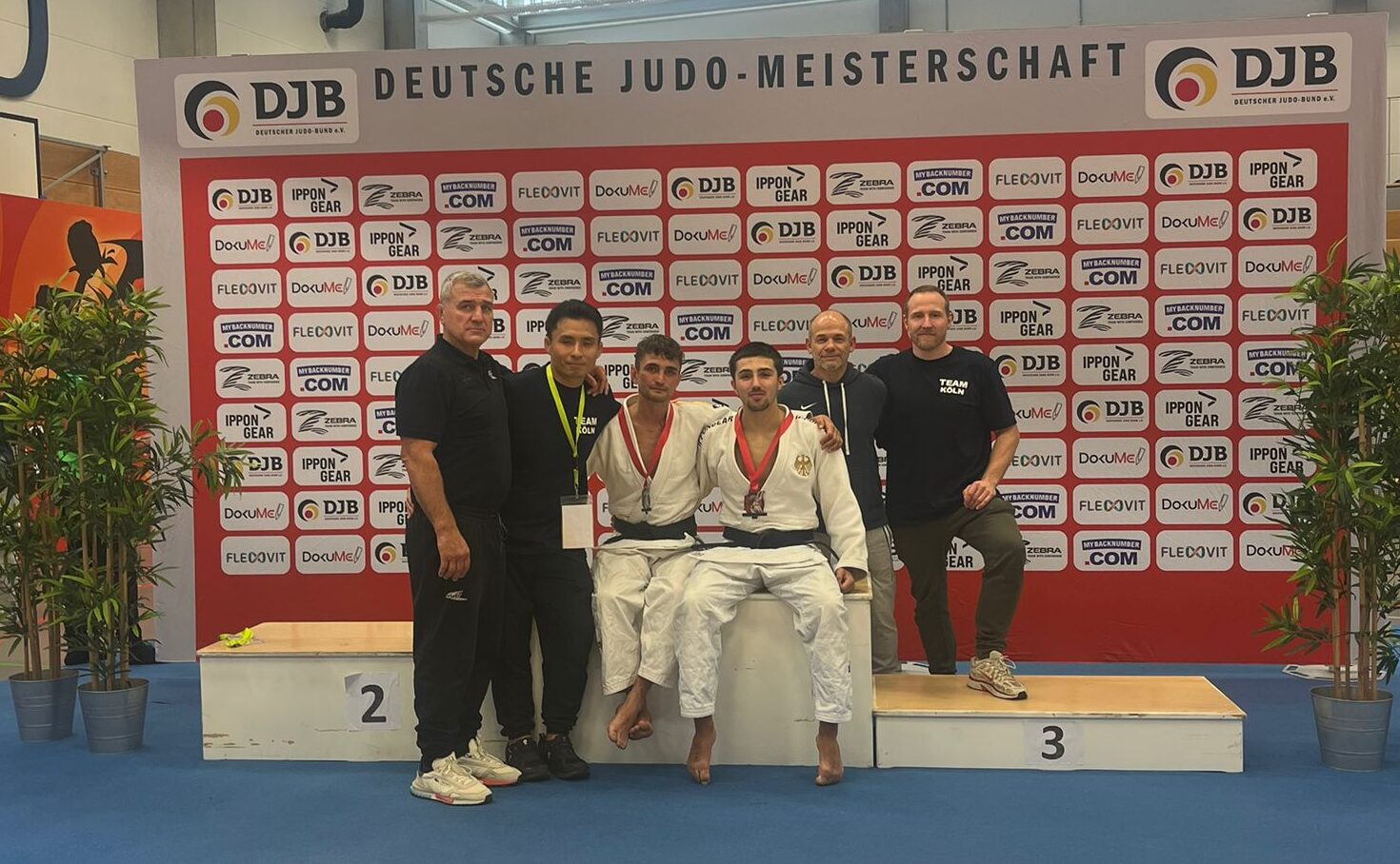v.l. Landestrainer Eduard Matijass, Bundesstützpunkttrainer Kansetsu Eguchi, Moritz Plafky, Florian Böcker, Bundesstützpunkttrainer Jan Tefett