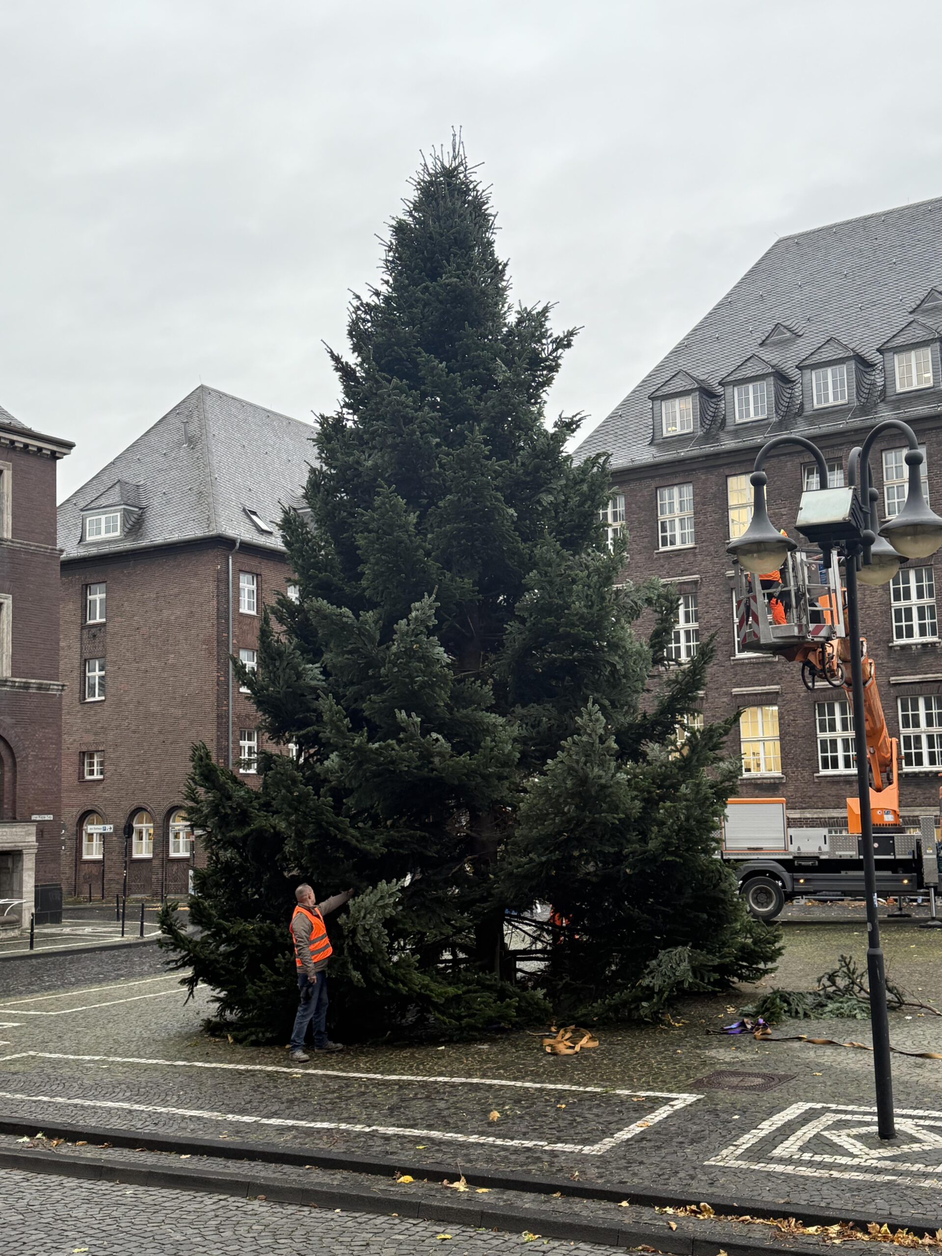 Die diesjährige Tanne für den Rathausplatz wurde erfolgreich aufgestellt und sorgt für Vorfreude auf die kommende Adventszeit. Der prächtige Baum stammt aus dem Sauerland, ist 13,4 Meter hoch und bringt beeindruckende drei Tonnen auf die Waage. Als nächstes wird der Baum mit Lichterketten geschmückt, ebenso wie die kleinen Bäume am Rathaus. Erstrahlen werden die Bäume jedoch erst am 13. November, wenn der Weihnachtsmarkt eröffnet wird.