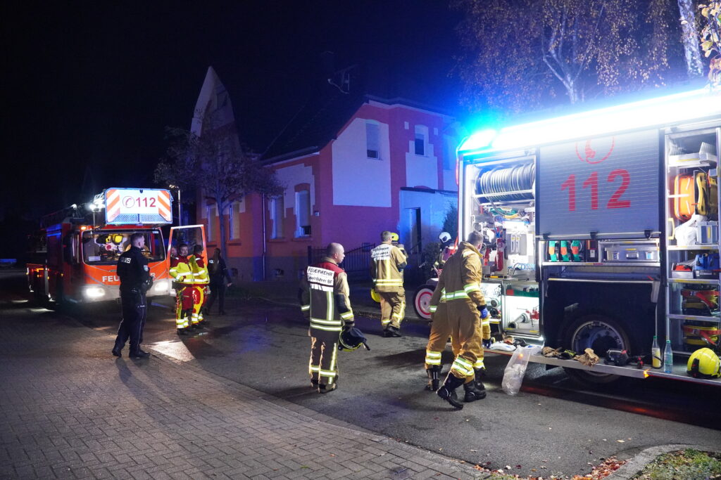 Die Leitstelle alarmierte daraufhin den Löschzug der Berufsfeuerwehr sowie die Freiwillige Feuerwehr Bottrop-Boy. Beim Eintreffen der ersten Kräfte wurde ein Brand in einer Doppelhaushälfte festgestellt.