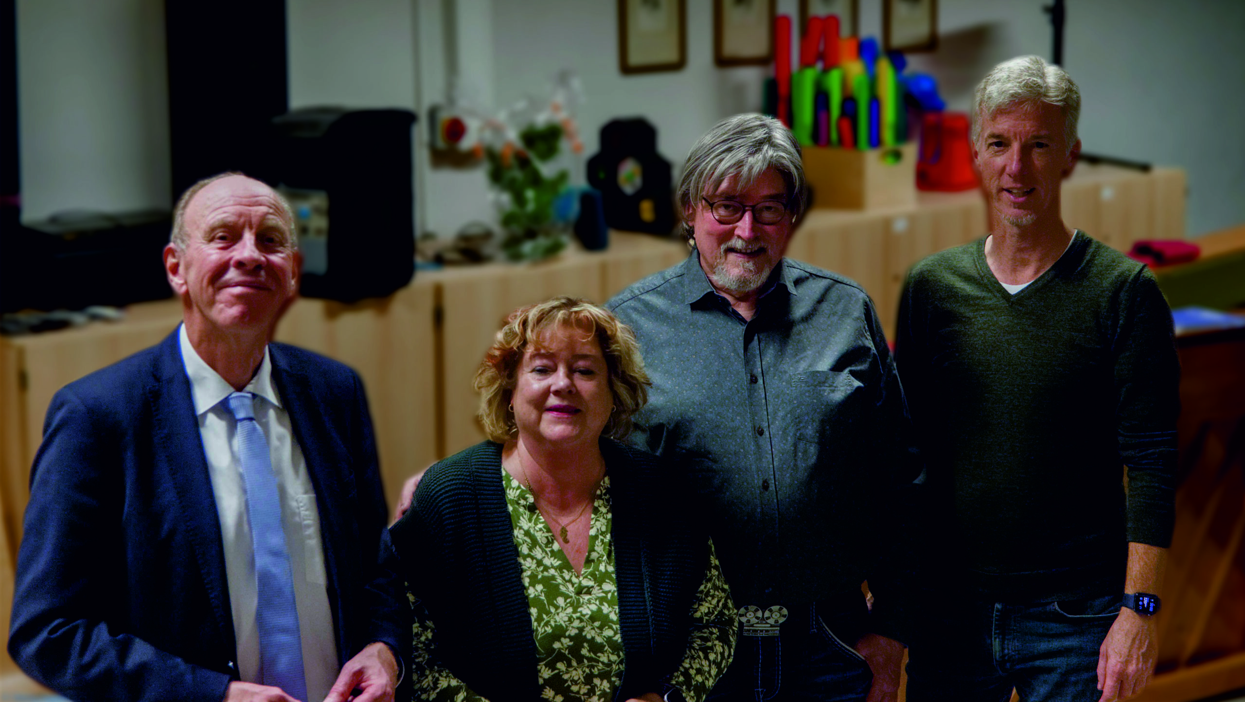 Im Bild von links nach rechts: Alt-OB Bernd Tischler, die neue Geschäftsführende Vorsitzende Petra Niesen, der scheidende Geschäftsführende Vorsitzende Rainer Neuwirth und der Chorleiter Ludger Köller. Foto: Georg Kappenberg