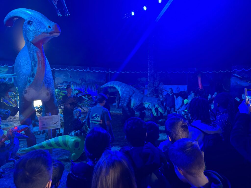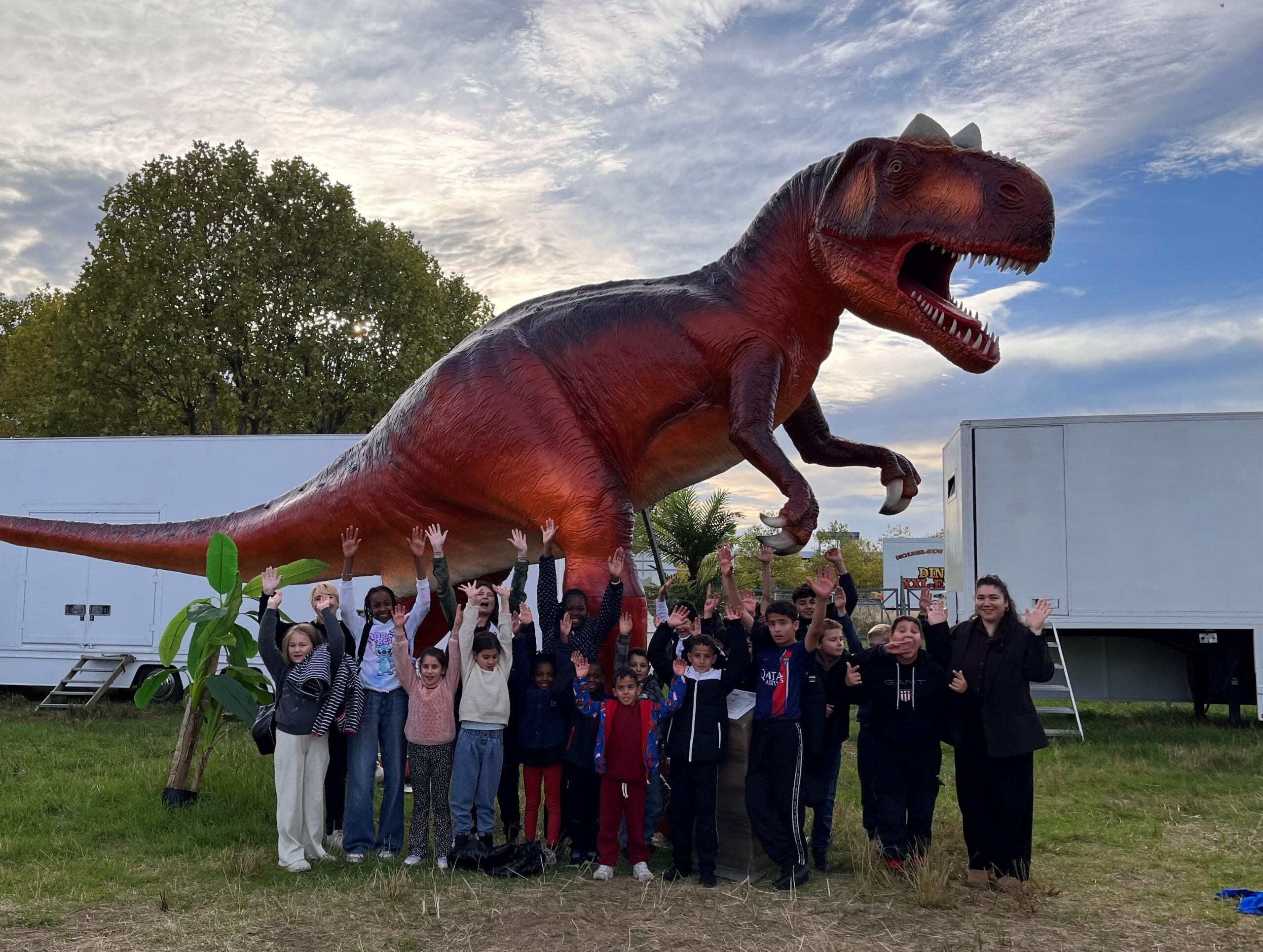 Das Team des Quartiersbüros Morianstraße hat mit Kindern aus der Nachbarschaft die „Dino XXL Expo“ an der Ruhrölstraße bei Ostermann in Bottrop besucht. Die Kinder konnten dort beeindruckende Nachbildungen von Urzeittieren wie dem 37 Meter langen Brachiosaurus, TRex oder weiteren Dinosaurierarten bestaunen.