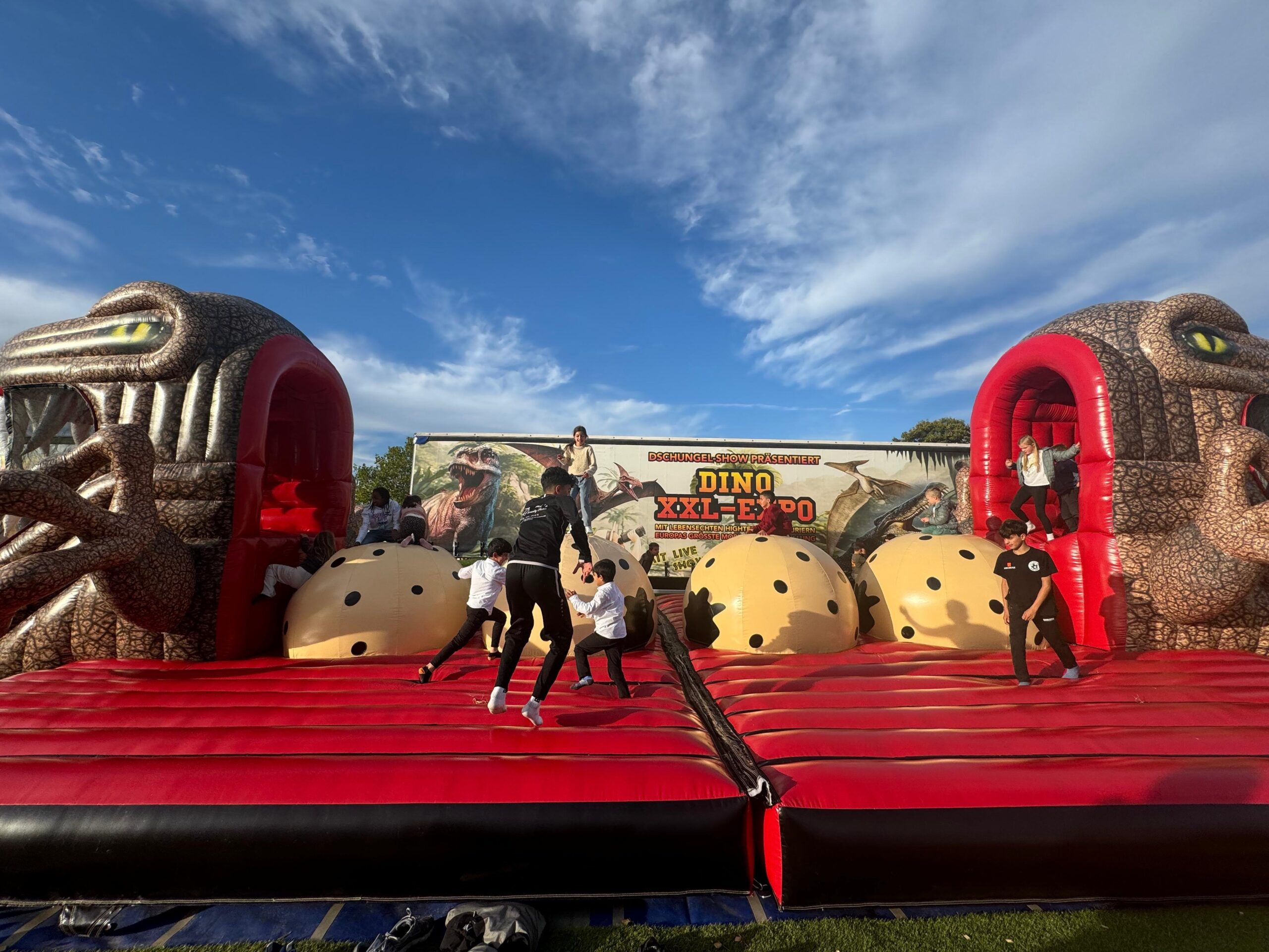 Besonders spannend für die Jungen und Mädchen war die Live-Show mit laufenden Dino-Kostümen und die riesige Hüpfburg, auf der sie sich richtig austoben konnten. Der Ausflug wurde durch das Dezernat für Bildung und Soziales der Stadt Bottrop ermöglicht, welches die Eintrittskarten finanzierte. Das Team möchte einen besonderen Dank an Helferin Susanne richten, die die Gruppe engagiert begleitet und unterstützt hat. Diesen Ausflug werden die Kids so schnell nicht vergessen.