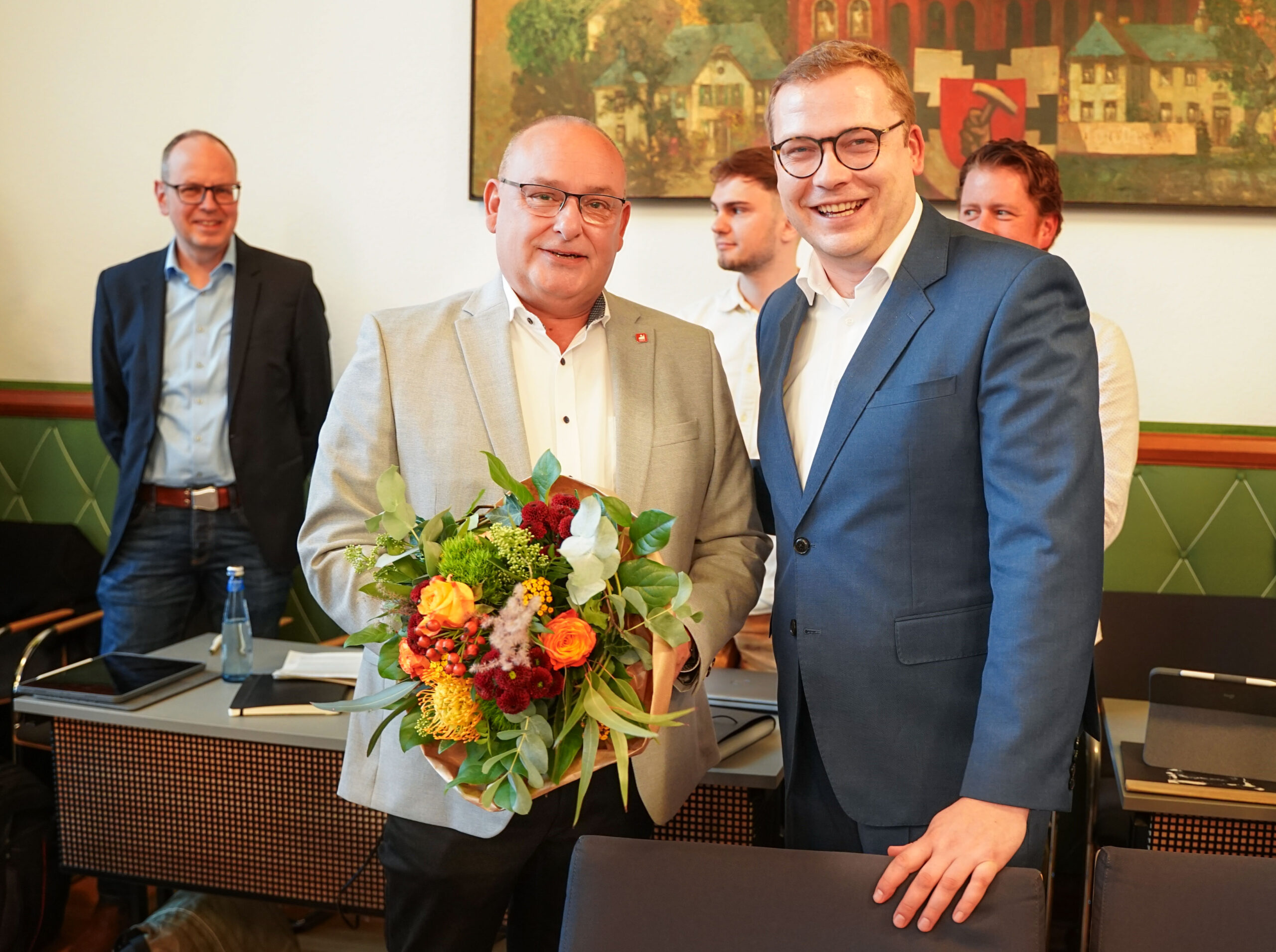 Oberbürgermeister Matthias Buschfeld (rechts) gratuliert Mirko Skela zur Wahl als Bezirksbürgermeister.