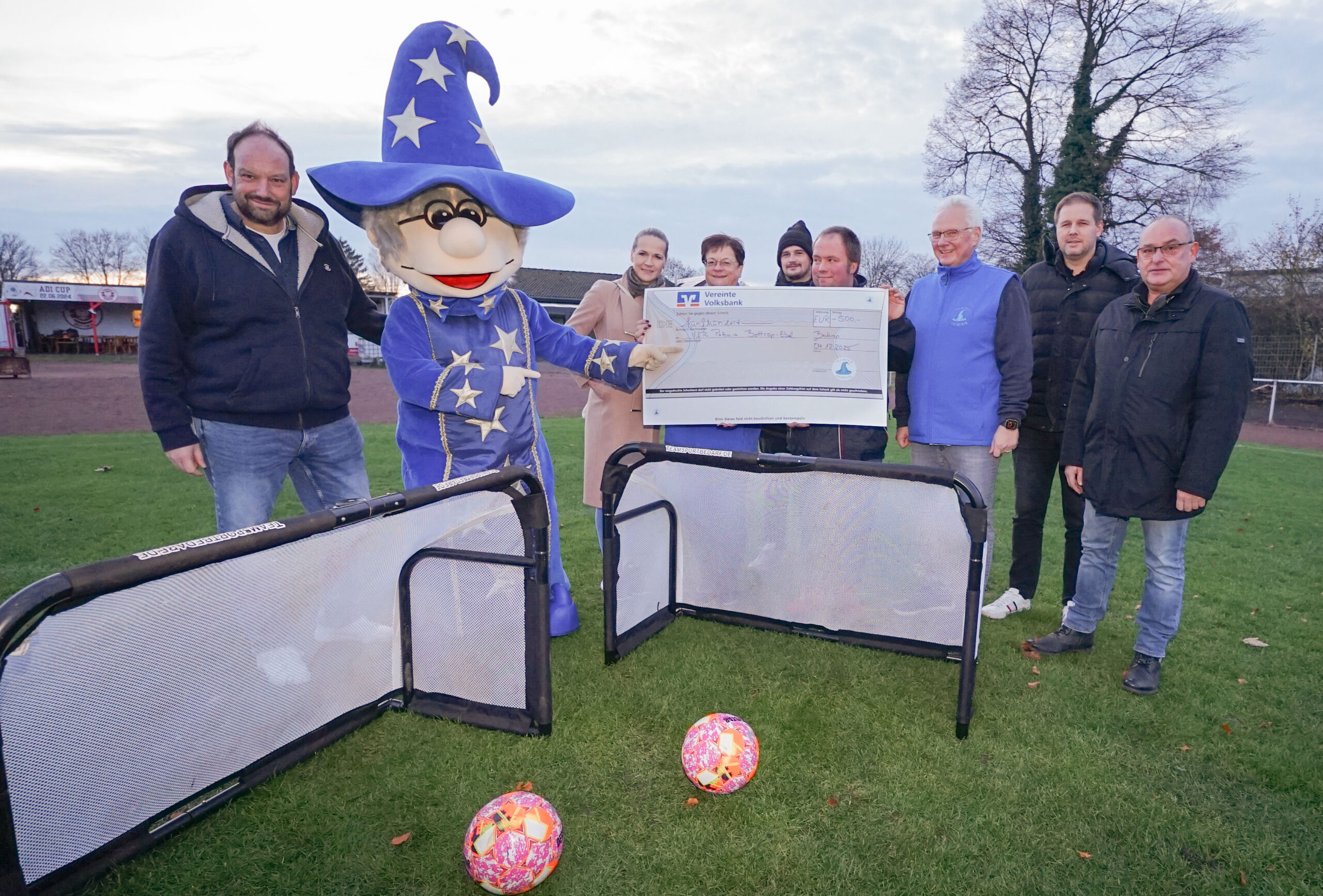 Der Wunschzauberer unterstützt die Vereinsarbeit beim VfR Polonia Bottrop-Ebel. Mit 500 Euro wird die Jugendarbeit gefördert. Mit dem Geld wurden bereits besondere Tore beschafft, die es den Kindern bis zehn Jahren ermöglichen, altersgerechte Spiele auszurichten.