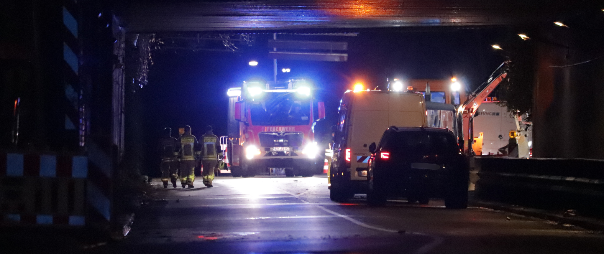 In Höhe der Bahnbrücke, zwischen Ostring und Knappenstraße, war bei Bauarbeiten eine Gasleitung beschädigt worden. Beim Eintreffen der Einsatzkräfte waren bereits Mitarbeiter des Netzbetreibers vor Ort. Insbesondere in der Baugrube waren hohe Gaskonzentrationen messbar.
