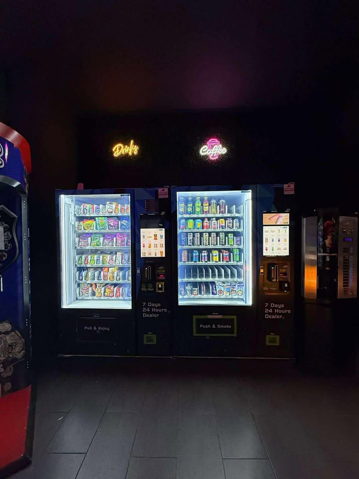 Fünf Hauptautomaten (Mastergeräte), sieben “Nebenautomaten” (Slave-Geräte), ein Boxautomat, ein Zigarettenautomat, ein Kaffee-Vollautomat sowie ein 24/7 Überwachungssystem. Die Automaten, so der Besitzer, seien alle von der Marke TCN sowie vollausgestattet. Alle besitzen ein eines Touch-Bedienfeld mit großen Display und Videofläche für Werbung.