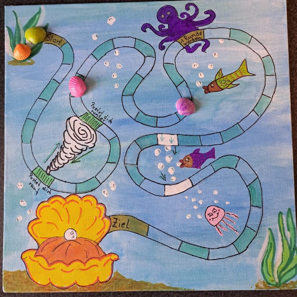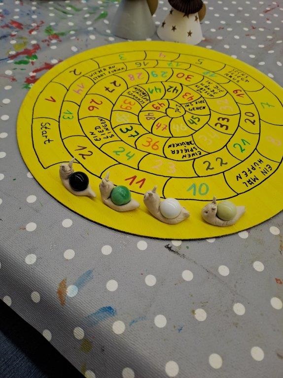 Jung und Alt waren mit viel Eifer bei der Sache. So entstanden bunte Spielbretter und kreative Spielfiguren. Am letzten Termin haben alle gemeinsam bei Kaffee und Kuchen die Spiele ausprobiert.