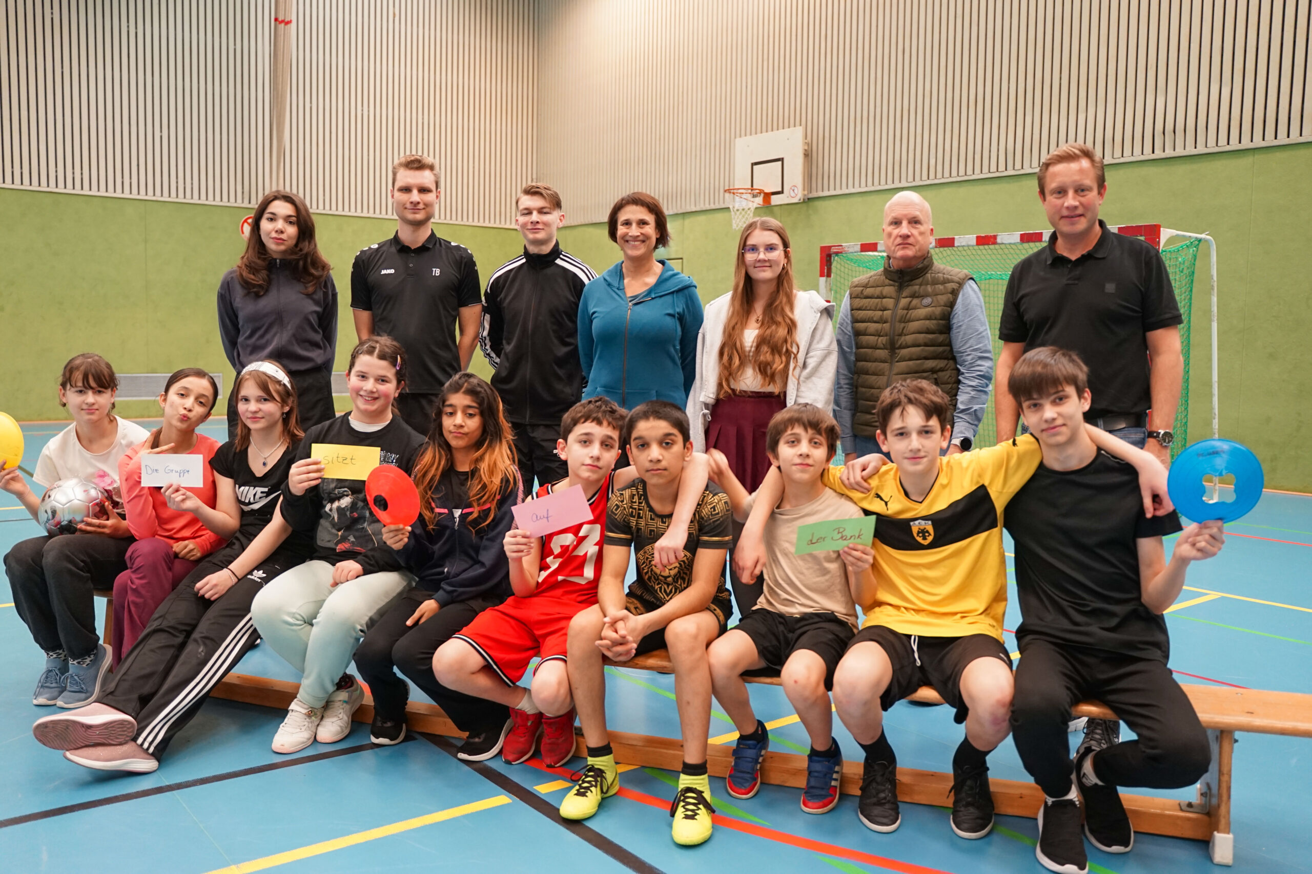Kinder und Jugendliche im Alter von zehn bis 15 Jahren lernen sportlich die deutsche Sprache. Jeden Freitag trainieren bis zu 30 Migrantinnen und Migranten in der Sporthalle der Gustav-Heinemann Realschule. Mit Spaß und Ehrgeiz folgen sie den Übungsanleitungen von Tristan Berghoff. Im Wettstreit sind nicht nur Ausdauer und Koordination gefordert, sondern auch wachsendes Sprachverständnis.
