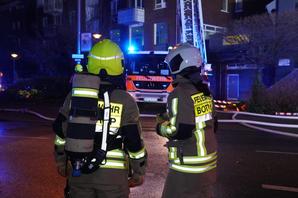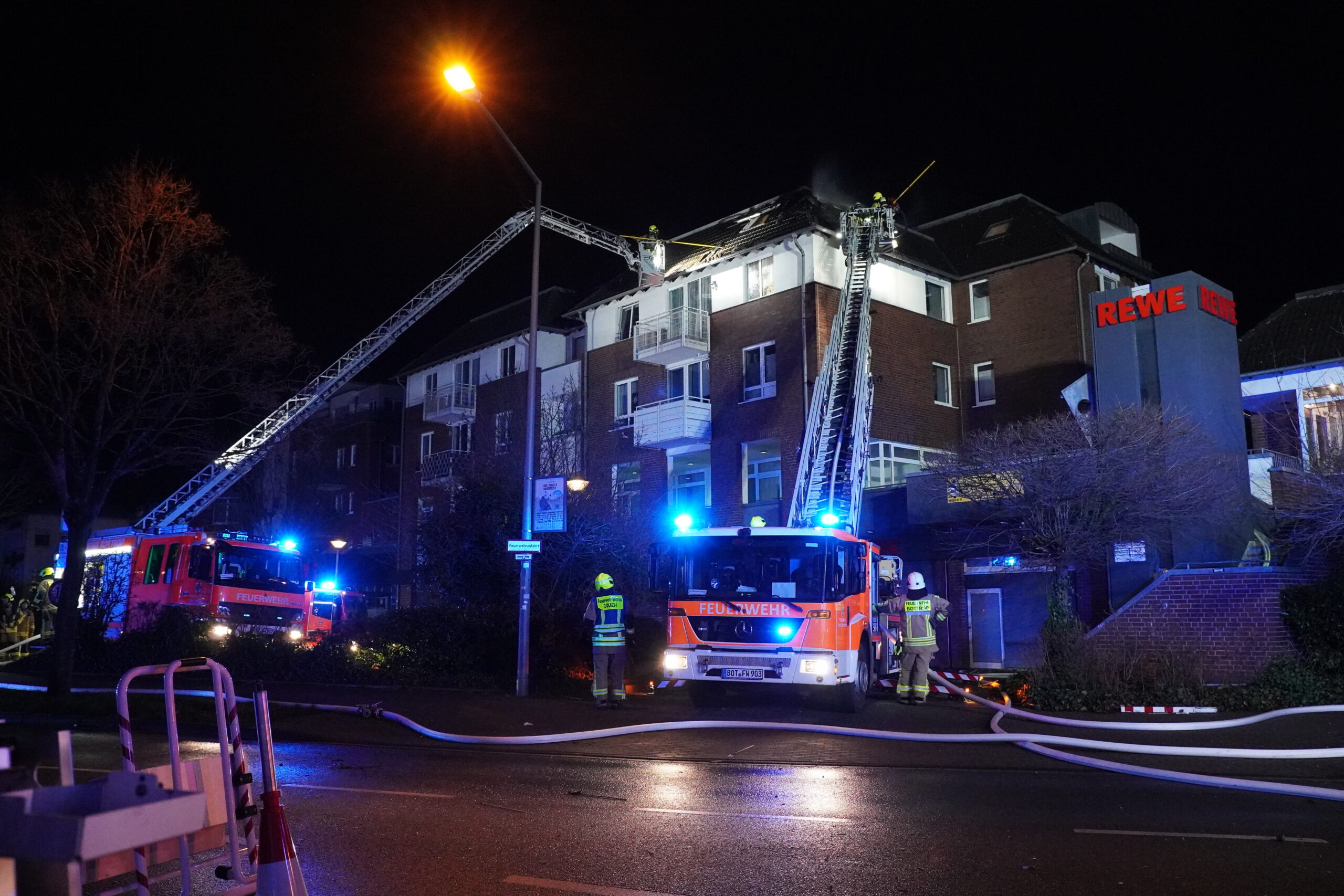 Um 0.40 wurde über den Notruf 112 ein Dachstuhlbrand auf der Schulze-Delitzsch-Straße in Kirchhellen gemeldet. Bei Eintreffen der Einsatzkräfte der Feuerwehr brannte es im Bereich des Dachfirstes eines Mehrfamilienhauses. Durch die gezielte Brandbekämpfung im Innenangriff und die parallele Brandbekämpfung von außen über eine Drehleiter konnte die Ausbreitung auf die gesamte Dachfläche verhindert werden.