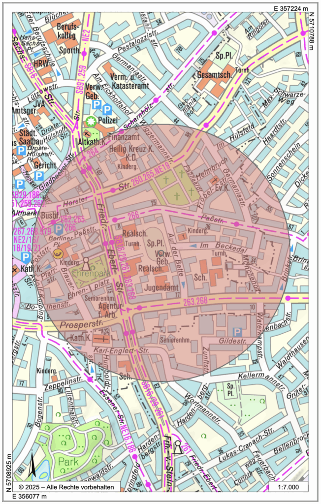Und auch der Einzelhandel würde die Folgen spüren – denn Filialen von Kaufland, Aldi und Thomas Philipps müssten geschlossen werden. Mindestens für die Zeit einer möglichen Entschärfung und einer damit einhergehenden Evakuierung. Immerhin: Die Hansa- und Hochstraße wären auch bei einem großen Blindgänger nicht betroffen.