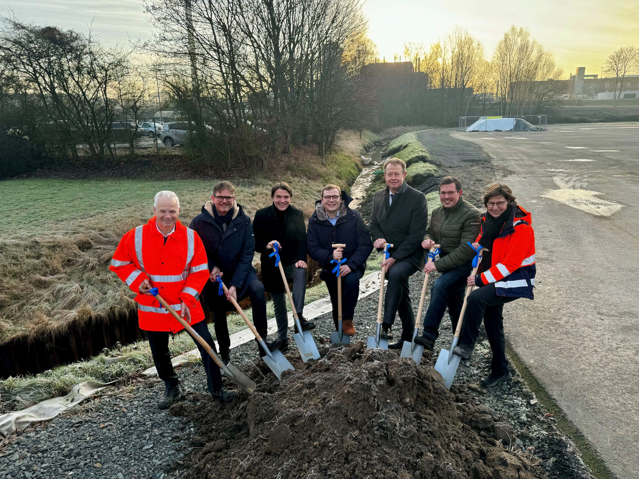 Im Rahmen des interkommunalen Stadtentwicklungsprojektes „Freiheit Emscher“ setzt die Emschergenossenschaft den wasserwirtschaftlichen Umbau der Aspelflötte sowie die Anbindung des Schäpersbachs an die Aspelflötte um. Dabei wird nicht nur die bestehende Trasse der Aspelflötte renaturiert und aufgewertet – auch bislang unterirdisch verrohrte Abschnitte werden offengelegt und neu modelliert. Gemeinsam mit den Partnern der Stadt Bottrop, der RAG Aktiengesellschaft und der Freiheit Emscher Entwicklungsgesellschaft mbH wurde am Mittwoch (21.1.) der erste Spatenstich gesetzt. Der symbolische Startschuss gilt zugleich auch dem Baustart für den Gewerbeboulevard, den die Stadt Bottrop parallel in der Welheimer Mark umsetzt.