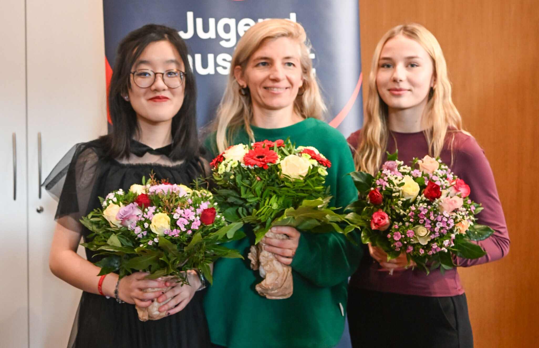 In ihrer Altersgruppe der 15- und 16-Jährigen erreichten Liv Cosberger und Juli Lin in der Kategorie offene Kammermusik mit Viola und Violine den ersten Platz und qualifizieren sich für den Landeswettbewerb. In der Kategorie Kammermusik Blasinstrumente mit Blockflöte kamen Luisa Aurora Thiemann und Nele Becker in der gleichen Altersgruppe ebenfalls auf den ersten Platz.