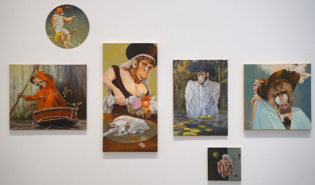 Der Schwerpunkt der Ausstellung liegt auf Ölmalerei auf Leinwand, ergänzt durch textile und plastische Arbeiten. Nach mehreren Ausstellungen mit einem starken Fokus auf Plastiken rücke damit nun wieder die Malerei in den Vordergrund, erläutert Kuratorin Katrin Reck.