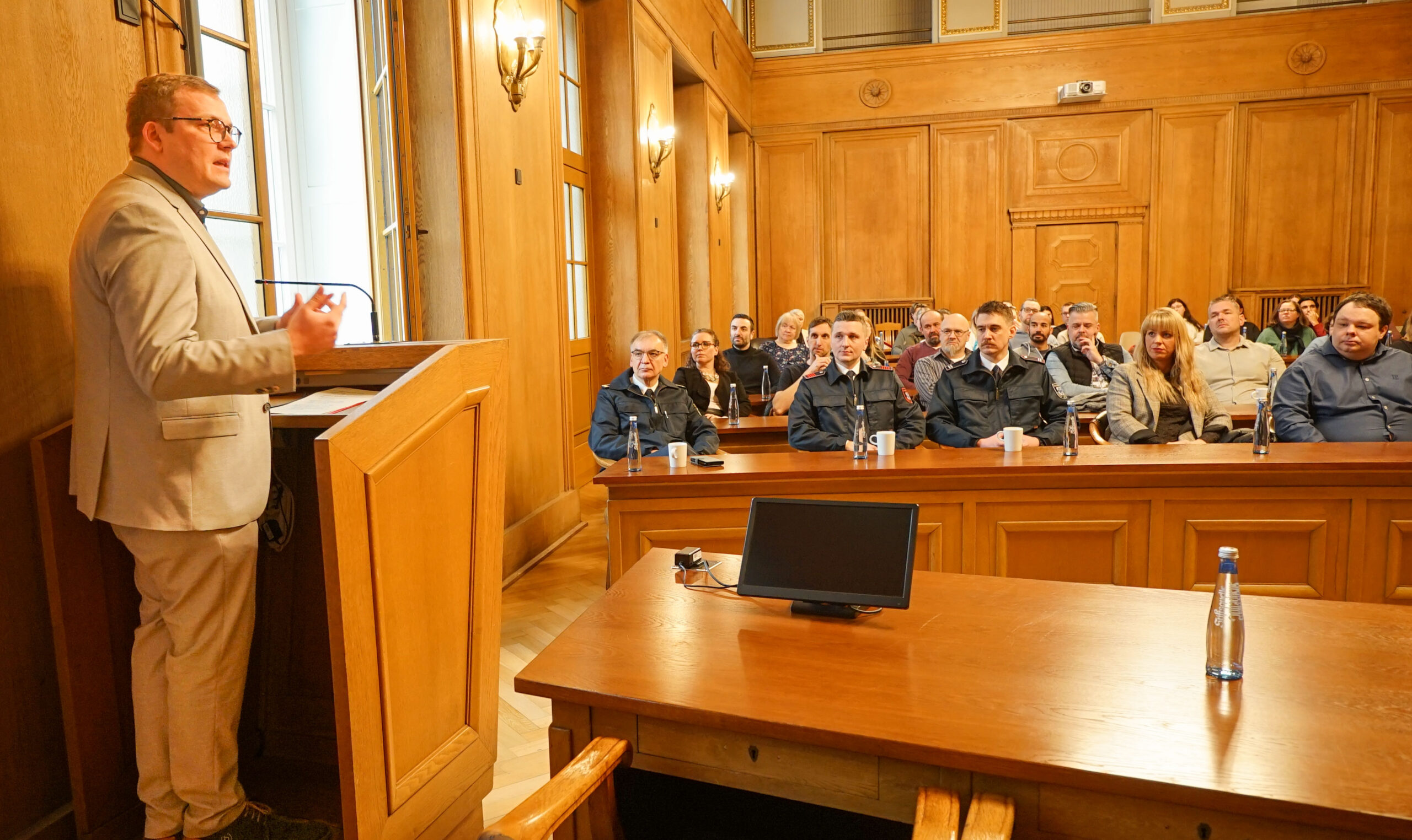 Die Stadtverwaltung ist ein starker Ausbildungsbetrieb. Dies hat Oberbürgermeister Matthias Buschfeld beim Empfang der Ausbilderinnen und Ausbilder im Ratssaal festgestellt. „Die Ausbildung ist eine tragende Säule der Personalentwicklung“, sagte Buschfeld. Rund 130 Ausbilderinnen und Ausbilder engagieren sich neben ihrem beruflichen Alltag für die Nachwuchskräfte. „Sie tragen damit maßgeblich zur Qualität und Attraktivität unserer Angebote bei“, sagte er mit Blick auf den Wettbewerb, dem sich die Stadtverwaltung auf dem Arbeitsmarkt stellt.