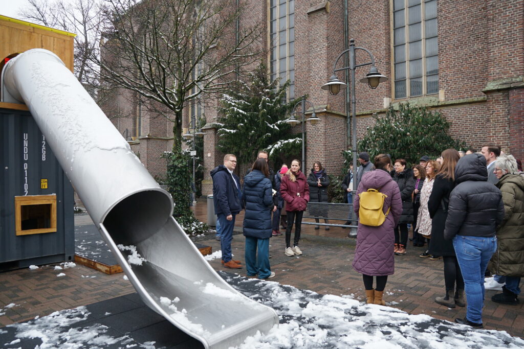 Gemeinsam blickten die Teilnehmenden auf bereits umgesetzte Projekte und erfolgreiche Kooperationen. Den Auftakt machte ein Besuch der KUKUK-Box. Vor Ort erläuterte Sozialamtsleiter Sascha Borowiak die Hintergründe des Projekts. Anfang Dezember wurde auf dem Kirchplatz eine neue mobile Spielecke für Kinder eröffnet: die „KUKUK-Box“, ein zu einem Spielraum umgebauter Überseecontainer. Ein Großteil der Finanzierung wurde durch den Verein Wunschzauberer e. V. ermöglicht.