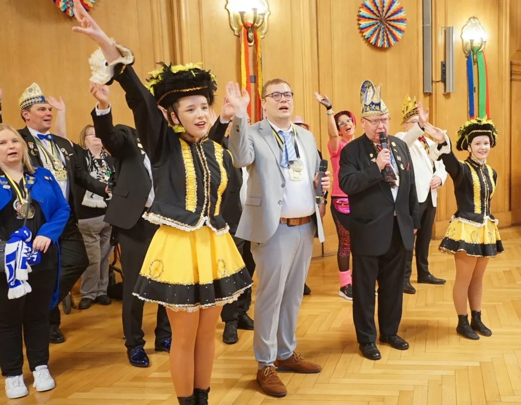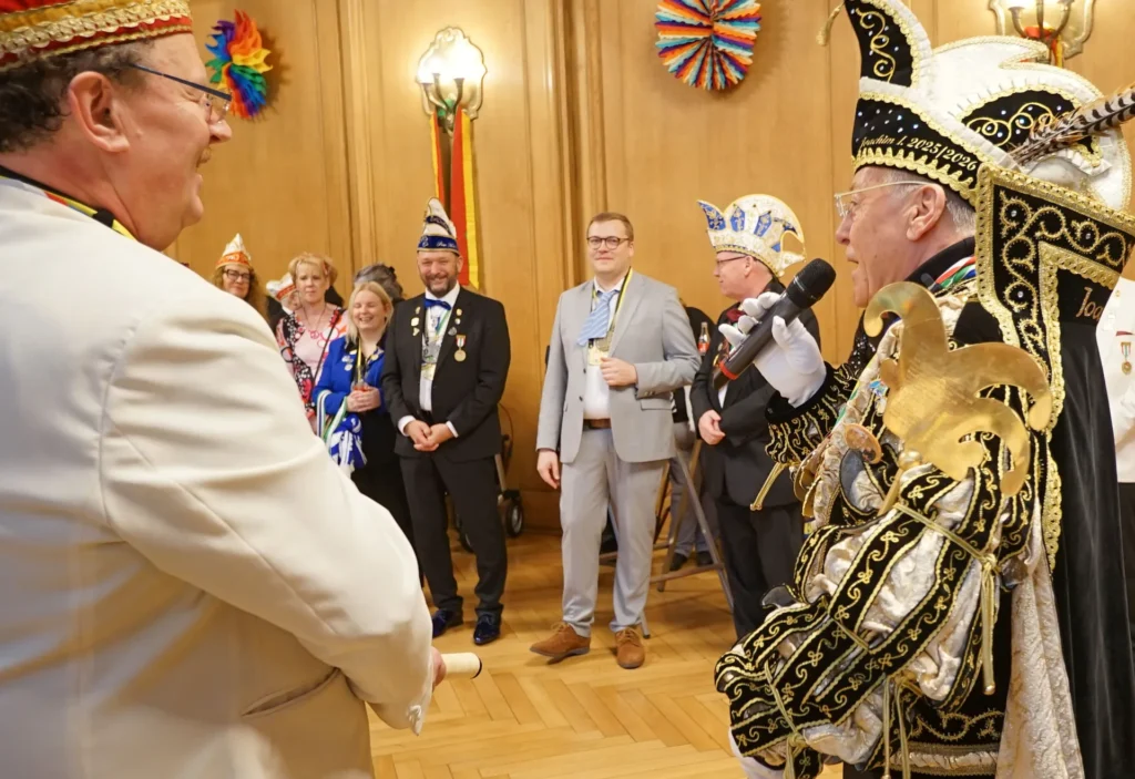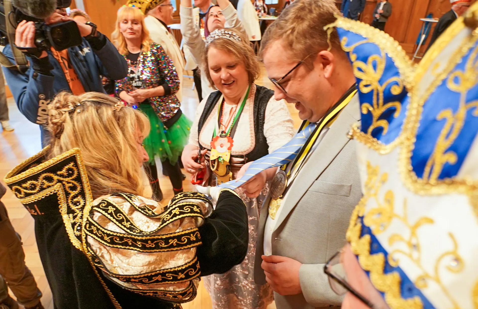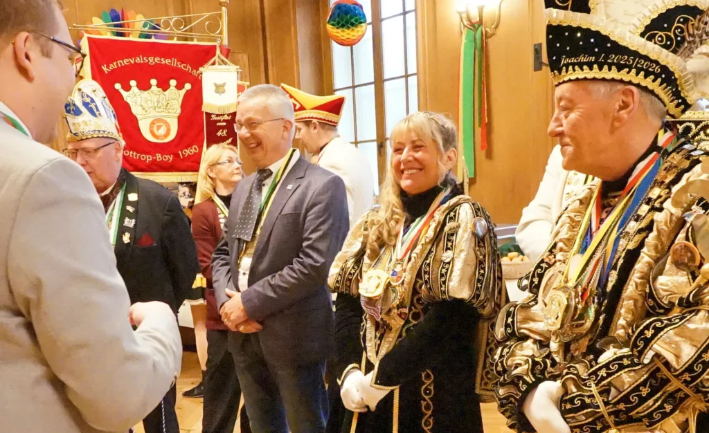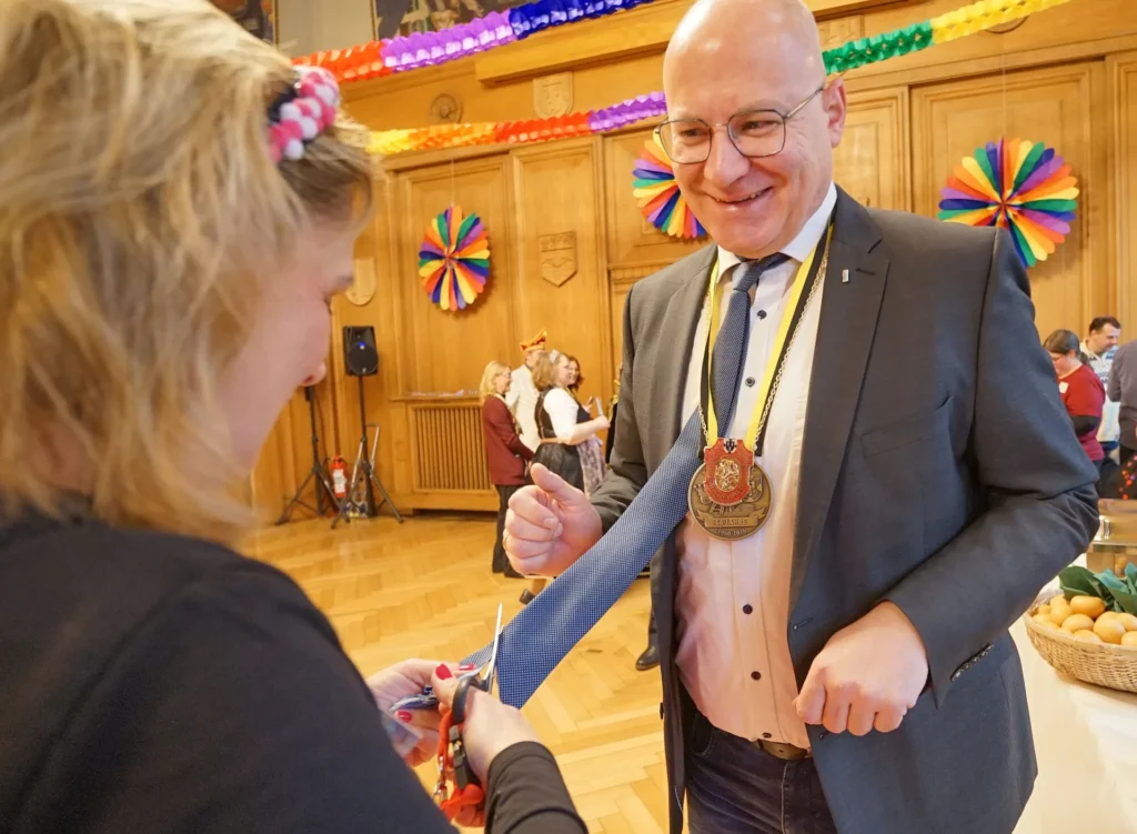 Für Matthias Buschfeld ist es die erste Karnevalsession als Oberbürgermeister. Um 11.11 Uhr ist die Hochzeit der Jecken mit dem Prinzenempfang an Weiberfastnacht gestartet. Das Stadtprinzenpaar Joachim I. und Gabriele I. (Joachim und Gabriele Christmann) von der KG Boy sowie das Prinzenpaar der Plattdütschen Nicole I. und Gregor I. (Nicole Wydra und Gregor Thater) kamen mit Gefolge und Hofstaat ins Rathaus. Mit viel Spaß, Tanz und Musik läuteten sie im dekorierten Ratssaal den Straßenkarneval ein. Anlassgemäß ging es den Herren an die Krawatten. Die jecken Frauen kürzten, mit Scheren ausgerüstet, das modische Accessoire von Oberbürgermeister Buschfeld und allen anderen Besuchern.