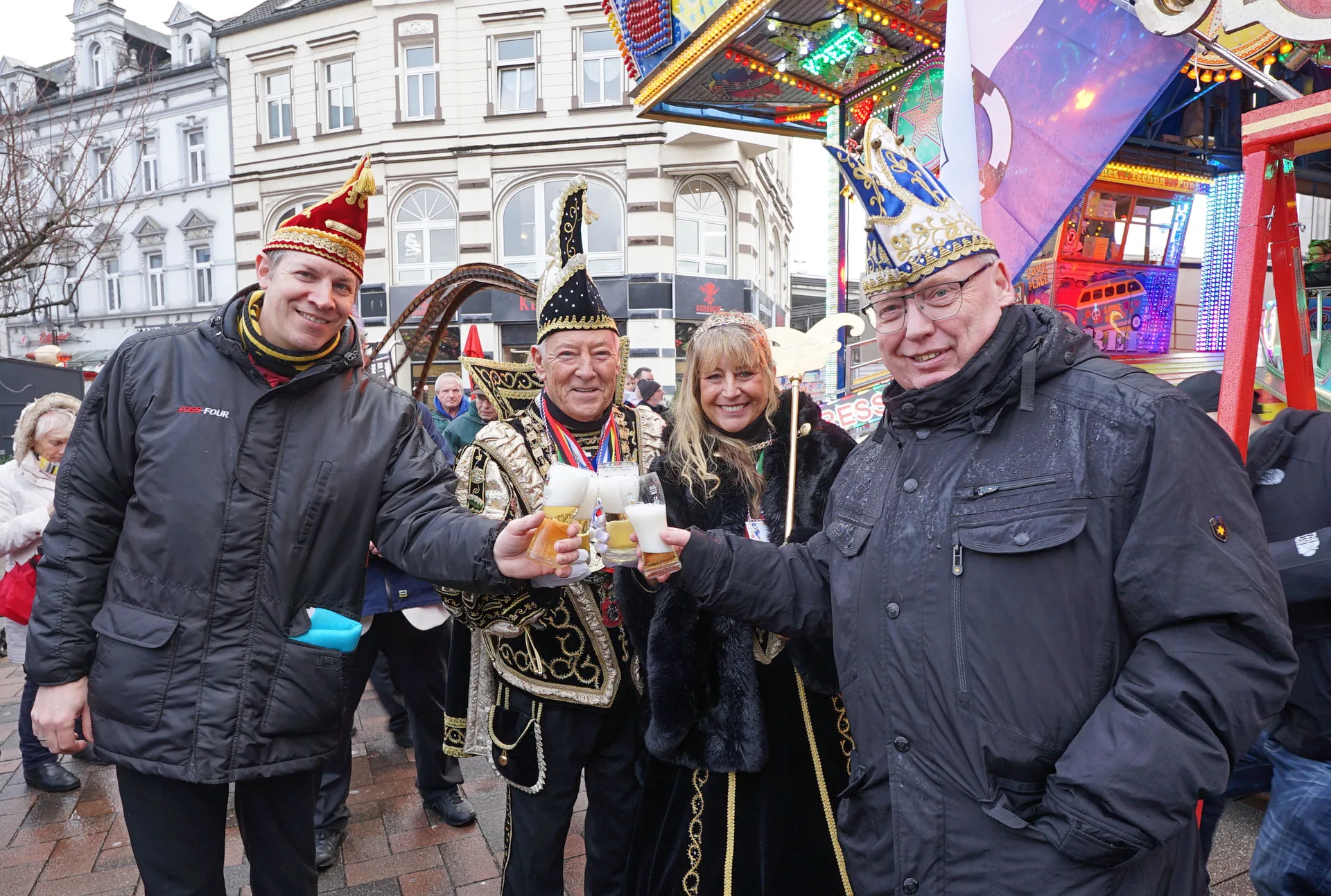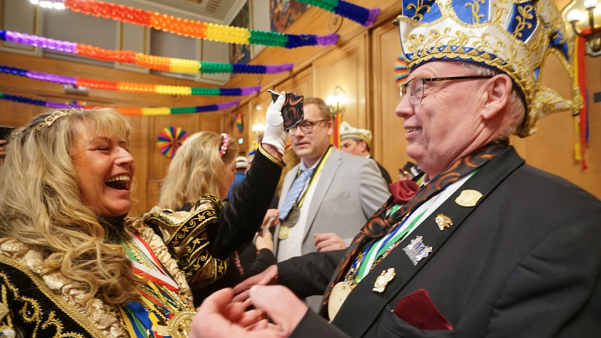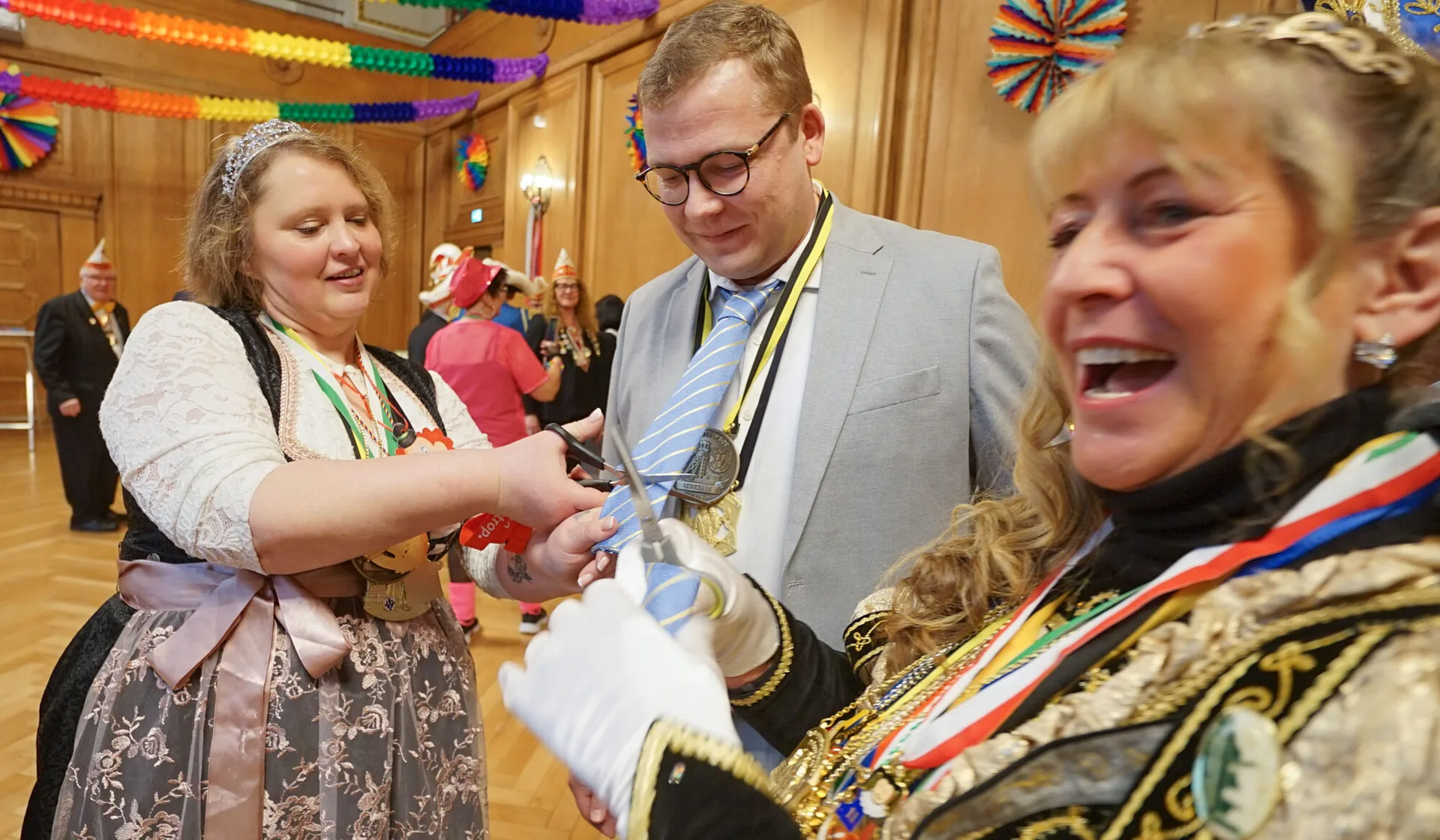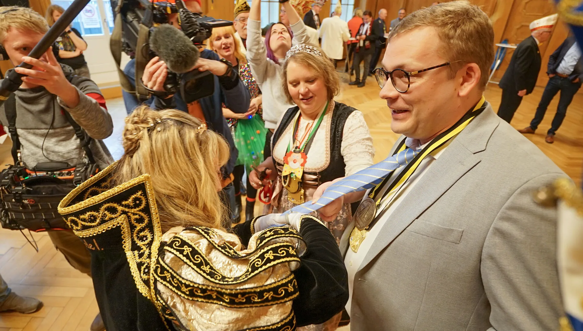 Für Matthias Buschfeld ist es die erste Karnevalsession als Oberbürgermeister. Um 11.11 Uhr ist die Hochzeit der Jecken mit dem Prinzenempfang an Weiberfastnacht gestartet. Das Stadtprinzenpaar Joachim I. und Gabriele I. (Joachim und Gabriele Christmann) von der KG Boy sowie das Prinzenpaar der Plattdütschen Nicole I. und Gregor I. (Nicole Wydra und Gregor Thater) kamen mit Gefolge und Hofstaat ins Rathaus. Mit viel Spaß, Tanz und Musik läuteten sie im dekorierten Ratssaal den Straßenkarneval ein. Anlassgemäß ging es den Herren an die Krawatten. Die jecken Frauen kürzten, mit Scheren ausgerüstet, das modische Accessoire von Oberbürgermeister Buschfeld und allen anderen Besuchern.
