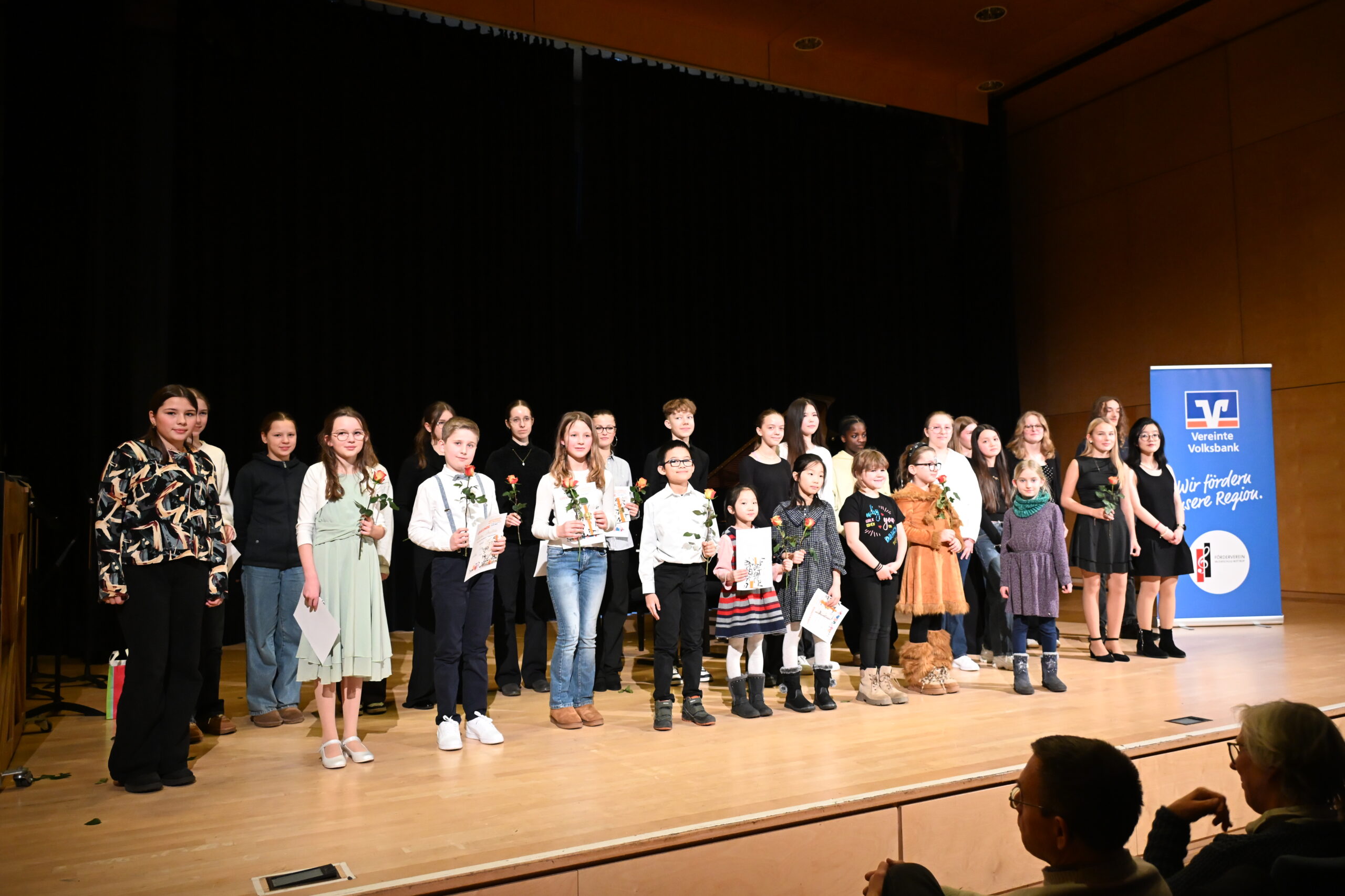 Im Anschluss an den Wettbewerb wurden durch den Förderverein der Musikschule alle Kinder und Jugendlichen mit Urkunden und Preisen geehrt. Auch die Teilnehmer eines weiteren Musikwettbewerbs kamen zum Zuge. Denn die acht Jungen und Mädchen, die sich bei „Jugend musiziert“ stellen werden, sorgten für die musikalische Umrahmung. Dafür bekamen sie ebenfalls eine Anerkennung.