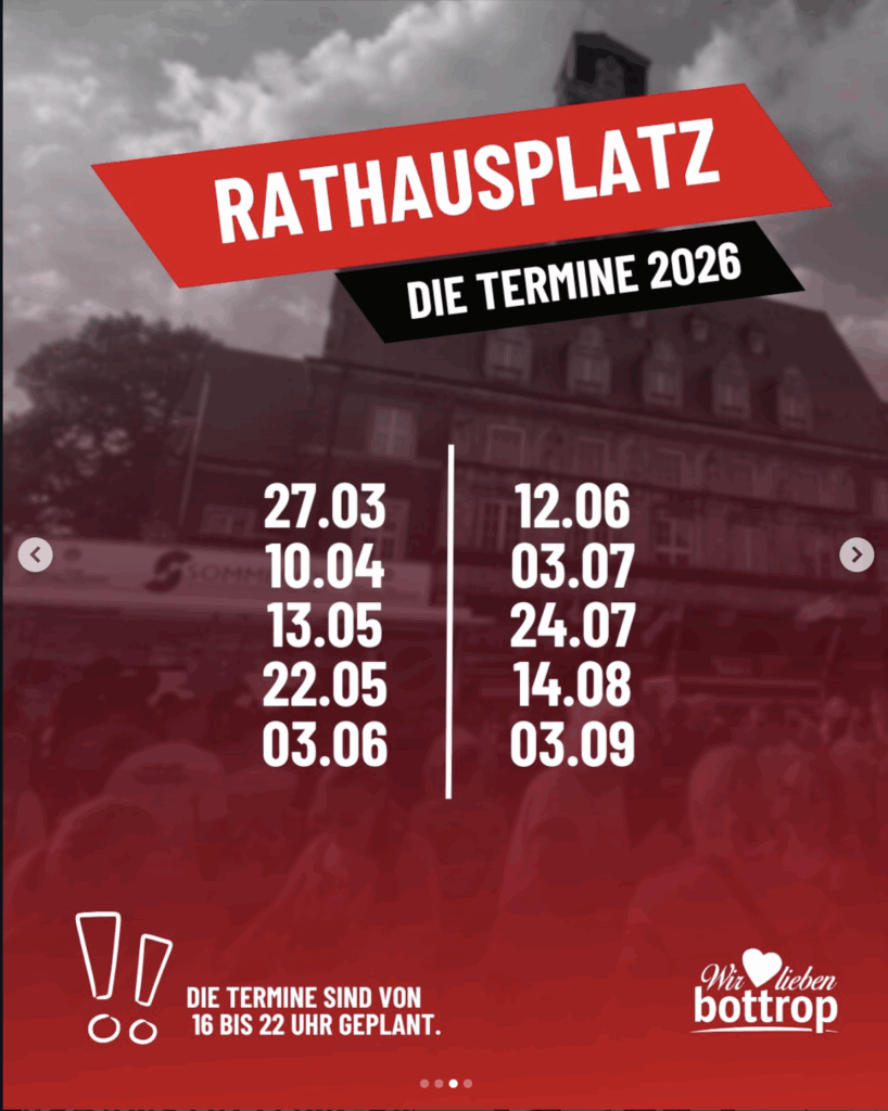 Du weißt von einem Event, das in unserem Kalender noch fehlt? Dann weise uns darauf per Mail an info@wir-lieben-bottrop.de hin und wir tragen es ein – komplett kostenlos.