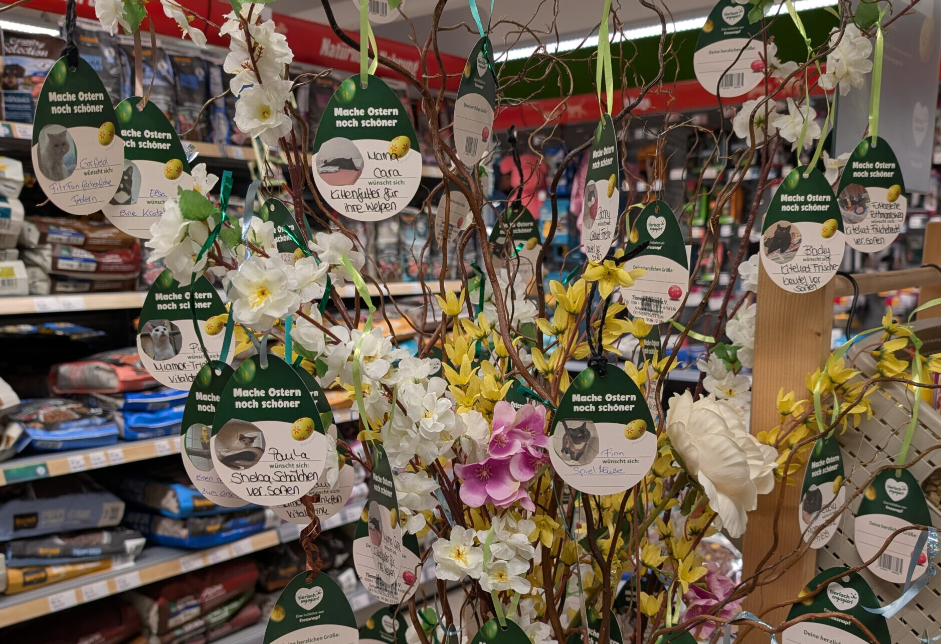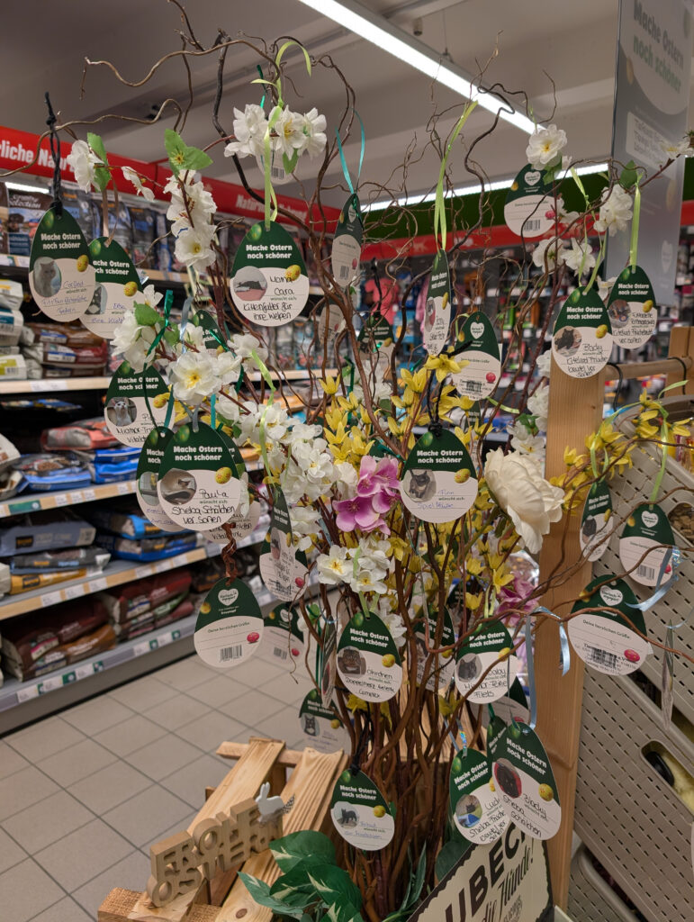 Ab Montag, 16. März, startet unsere Oster-Wunschaktion.Ihr könnt Tierschutztieren in der Filiale am Südring 79 in Bottrop einen Wunsch vom Baum pflücken, ihn direkt im Markt erfüllen und so Tierschutzvereine und ihre Schützlinge unterstützen.