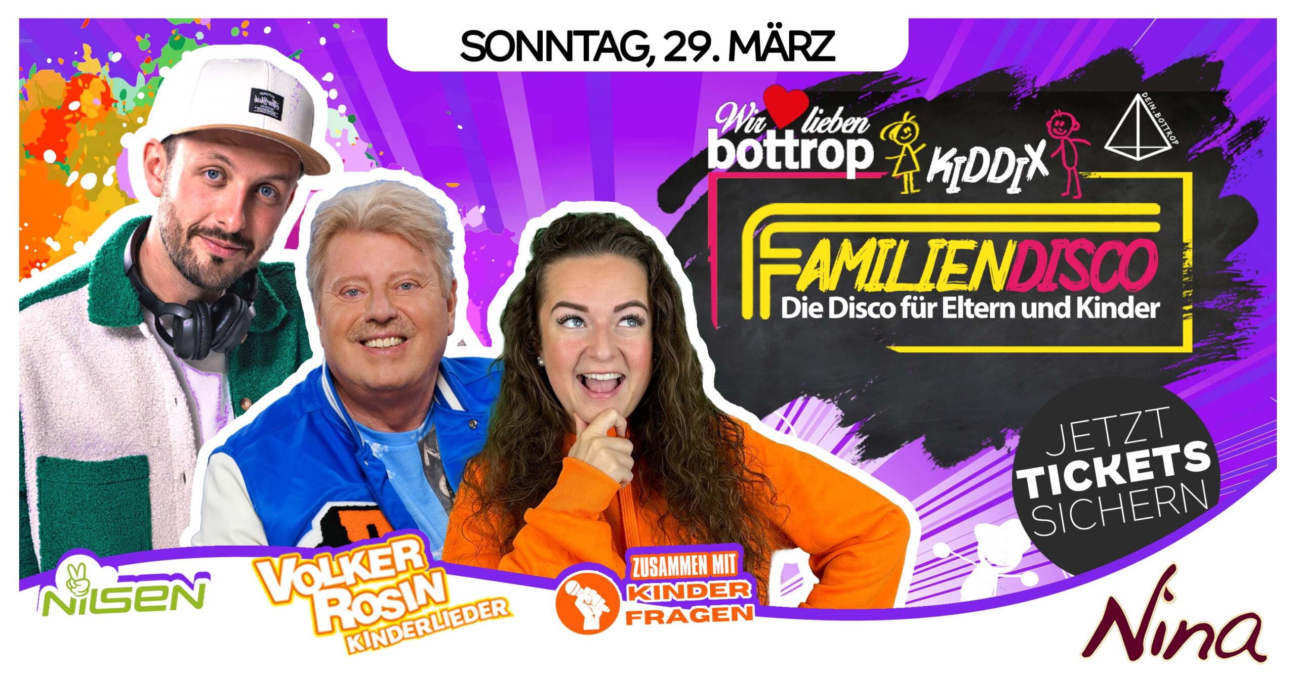 Wenn sich das Tanzlokal NINA, dein.bottropp und Wir lieben Bottrop zusammentun, dann ist beste Stimmung garantiert – vor allem für die kleinsten Bottroperinnen und Bottroper. Am Sonntag, 29. März, verwandelt sich das Tanzlokal am Südringcenter erneut in ein buntes Paradies für Familien: „KIDDIX – Die Familiendisco“ geht in die nächste Runde.