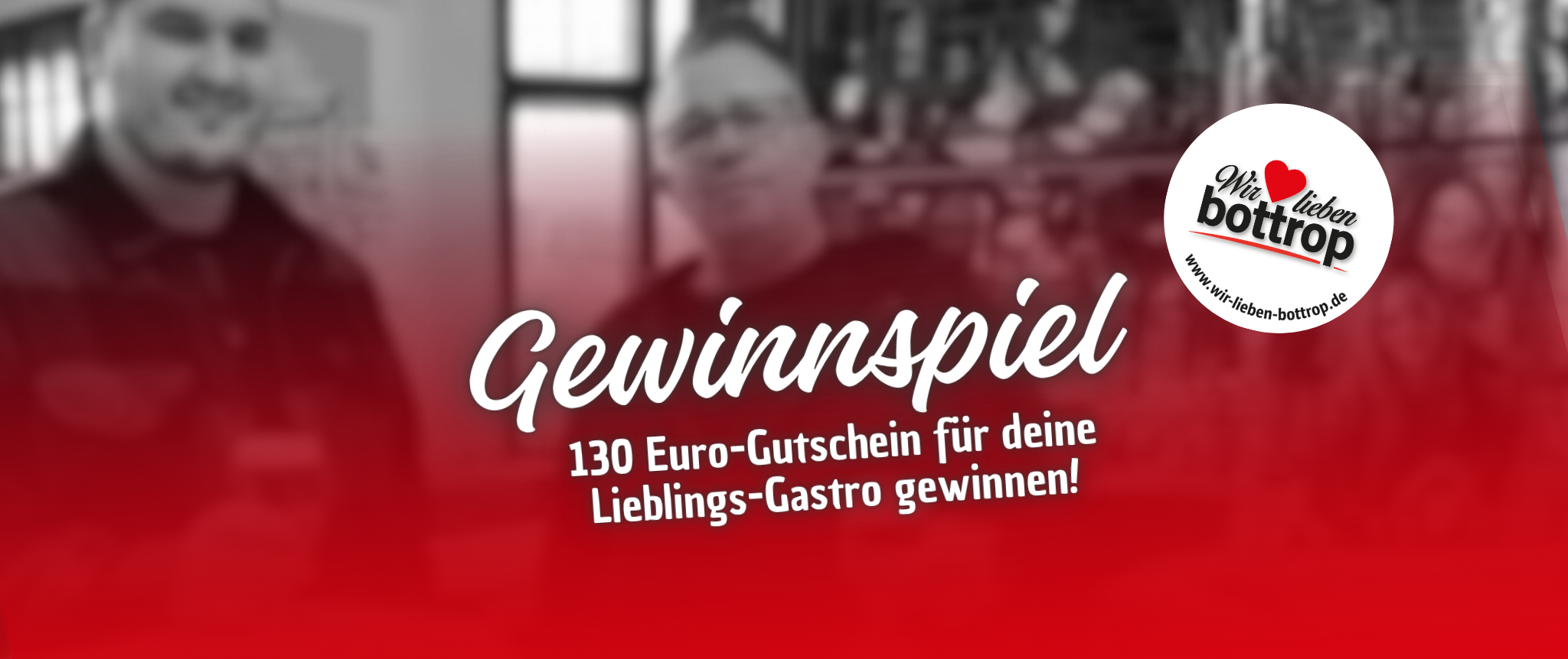 Grund genug, dass wir mal wieder etwas zurückgeben. Deshalb verlosen wir jetzt einen 130 Euro-Gutschein für eine Bottroper Gastronomie deiner Wahl. Ob du in eine ehrliche Kneipe, einen leckeren Imbiss oder ein Restaurant auf der Gastromeile willst – du hast die freie Wahl. Wichtig: In Bottrop muss es sein.