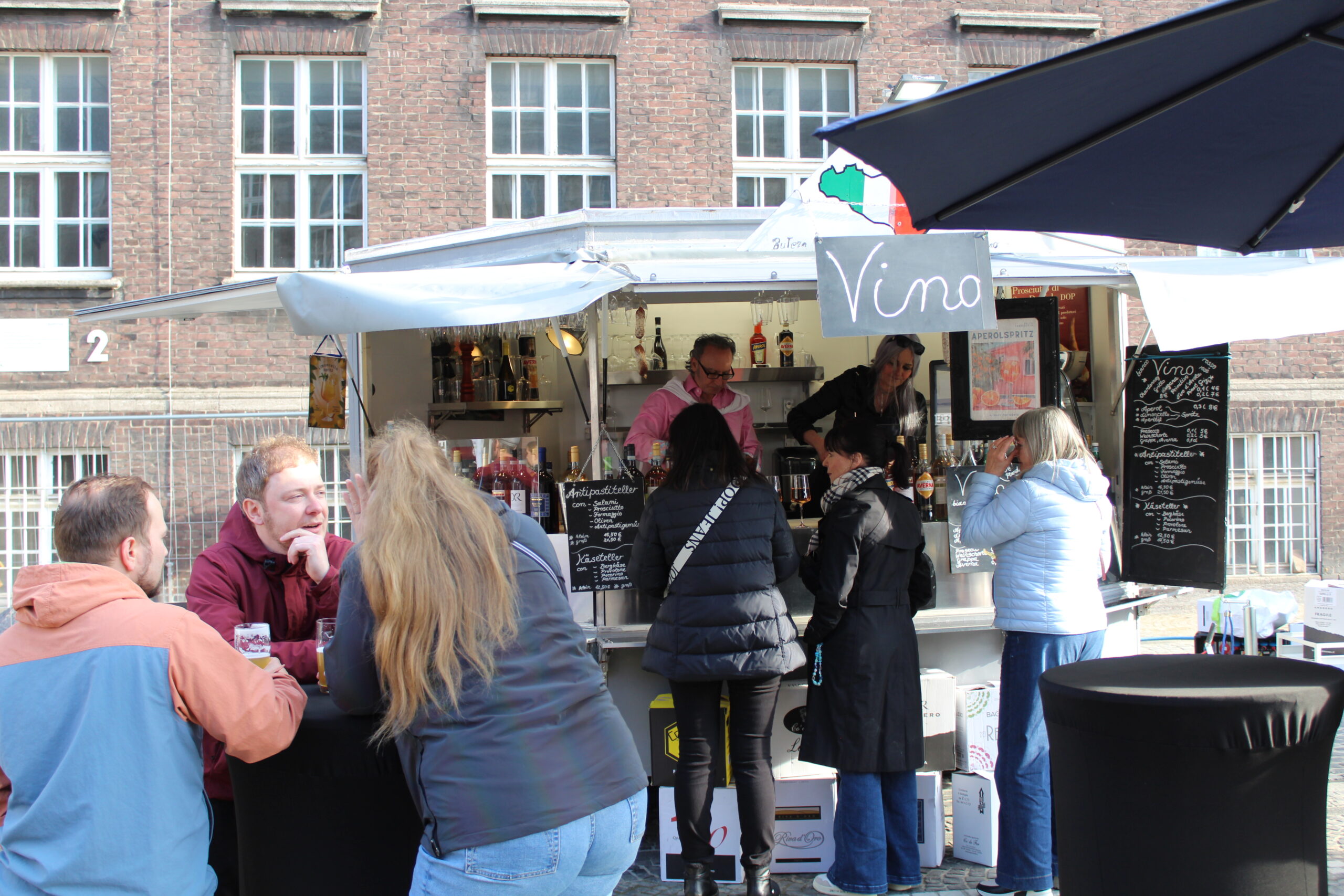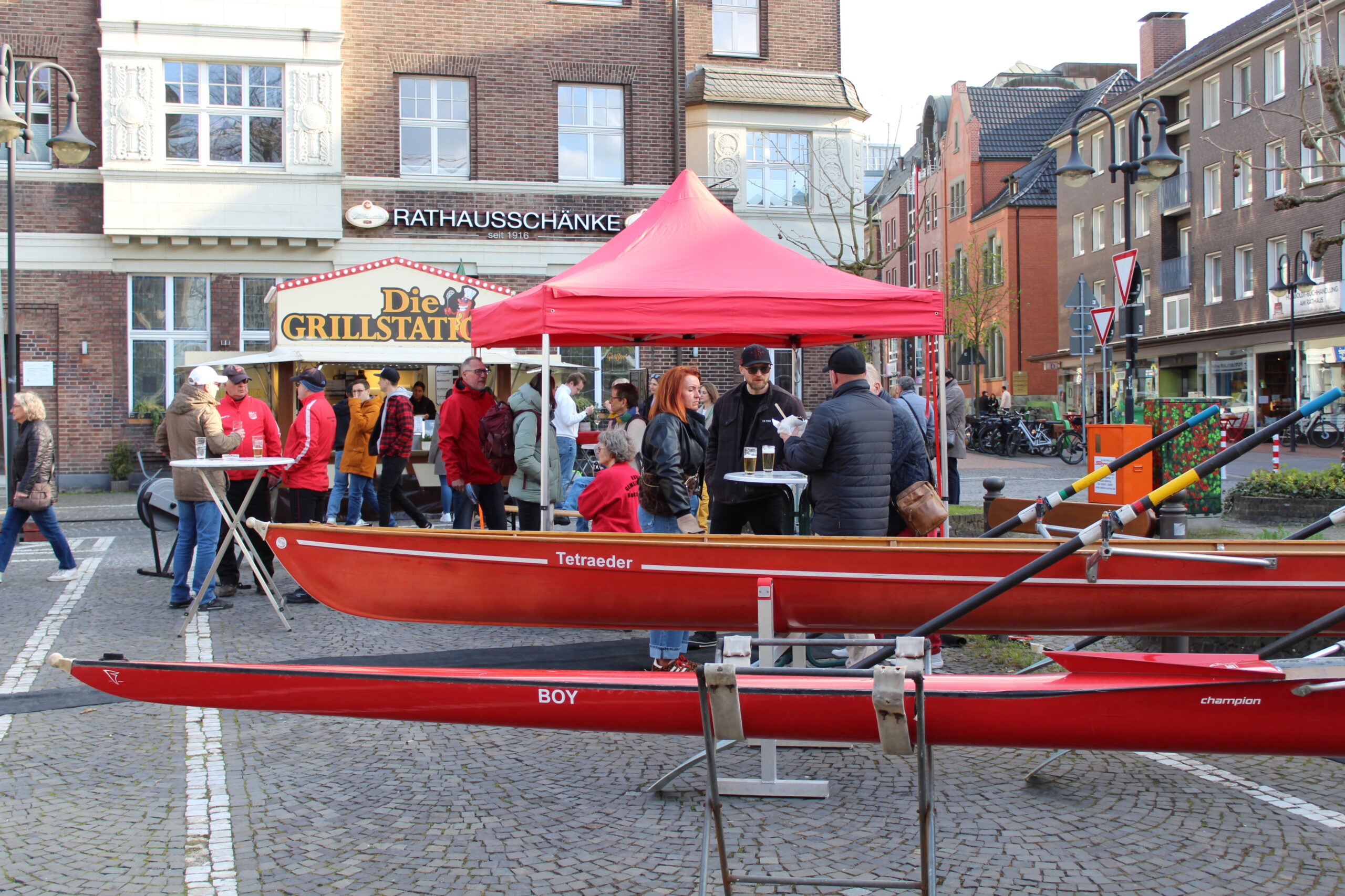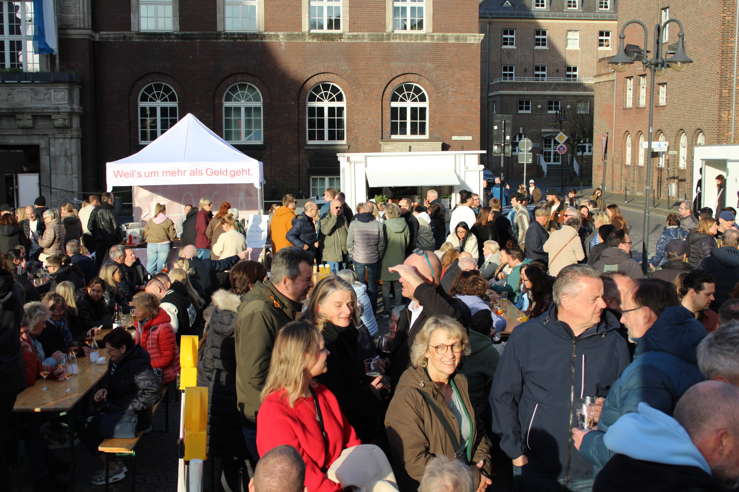Hunderte Bottroperinnen und Bottroper, Sonnenschein und ein großes Gastro-Angebot, von Roastbeef-Sandwich über Döner-Pirroge bis Pommes-Currywurst – all das gab’s am Freitag, 10. April, auf dem Rathausplatz in Bottrops Innenstadt – beim Feierabendmarkt.