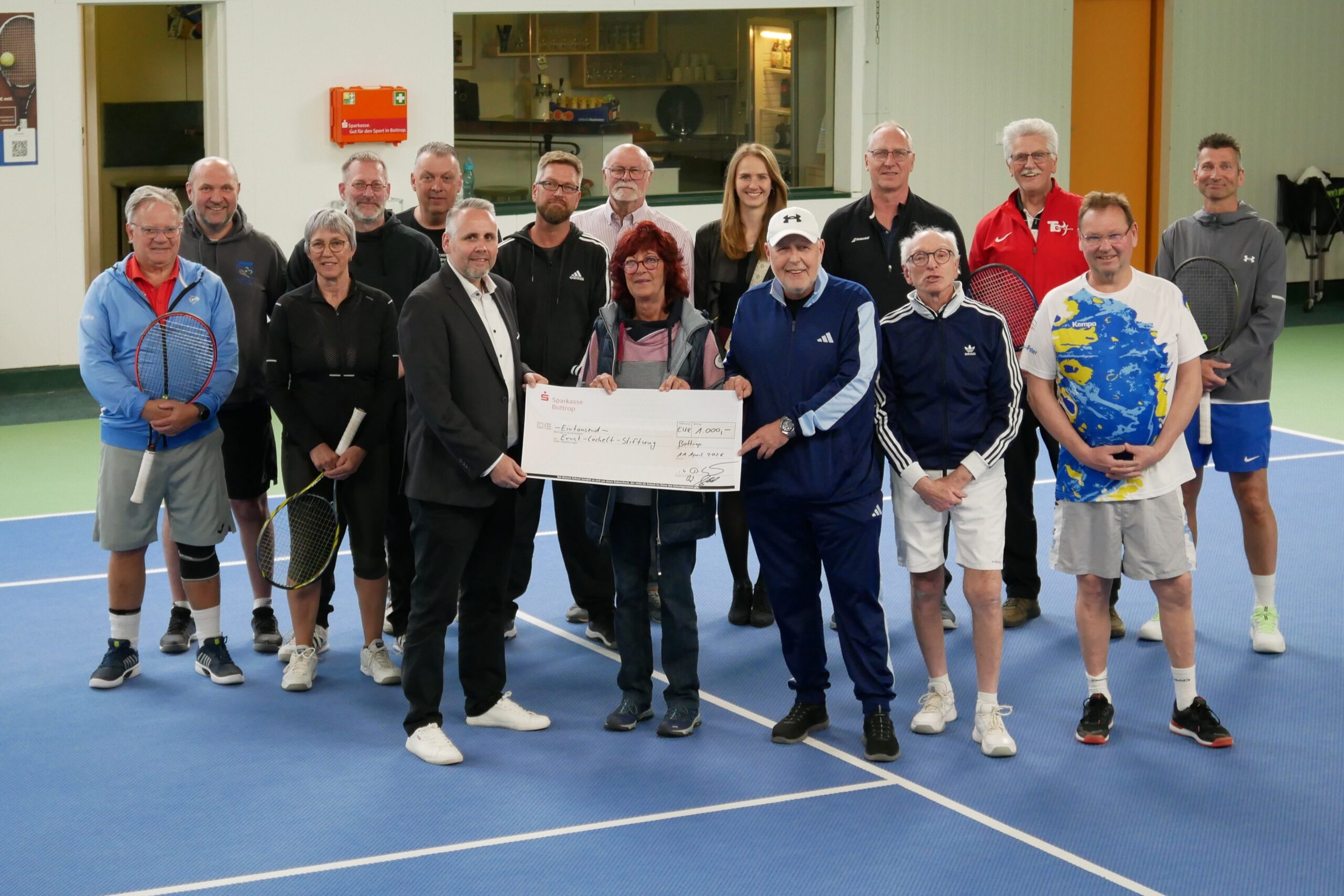 Rund sechs Wochen nach dem 200. Frühschoppen trafen sich die Vorstände der Bottroper Tennisvereine am 12. April in der Tennishalle des TC Blau-Gelb Eigen zum Heinz-Lehrmann-Turnier. In guter Tradition wurde gemeinsam mit der Sparkasse Bottrop ein Spendenscheck an die Ernst-Löchelt-Stiftung überreicht.