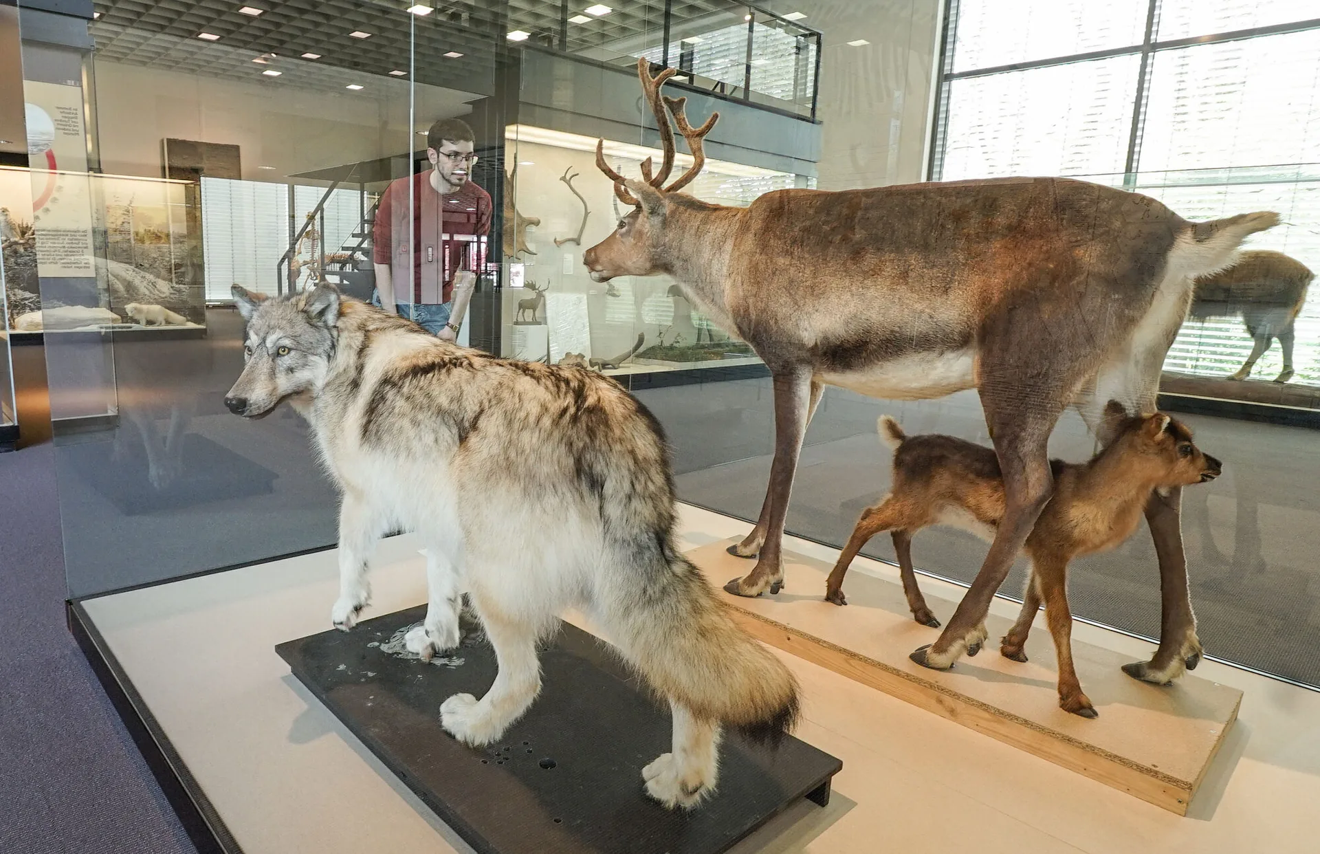 Die Lücken im Museum für Ur- und Ortsgeschichte wurden jetzt mit sogenannten Dermoplastiken gefüllt. Abteilungsleiter Dr. Charalampos Kevrekidis präsentierte ein Rentier mit Kalb und einen Wolf, die nun einen Gästeplatz in einer Vitrine gefunden haben.