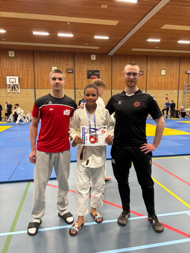 Doch nicht nur in der U18 sorgten die Bottroper Farben für Glanzmomente. Auch der Nachwuchs zeigte eindrucksvoll, dass beim JC 66 hervorragende Arbeit geleistet wird. In der U13 kämpfte sich Louisa Schneider bis ins Finale der Gewichtsklasse bis 57 Kilogramm vor. Mit großem Einsatz und mutigem Auftreten sicherte sie sich einen starken zweiten Platz und damit die Silbermedaille.