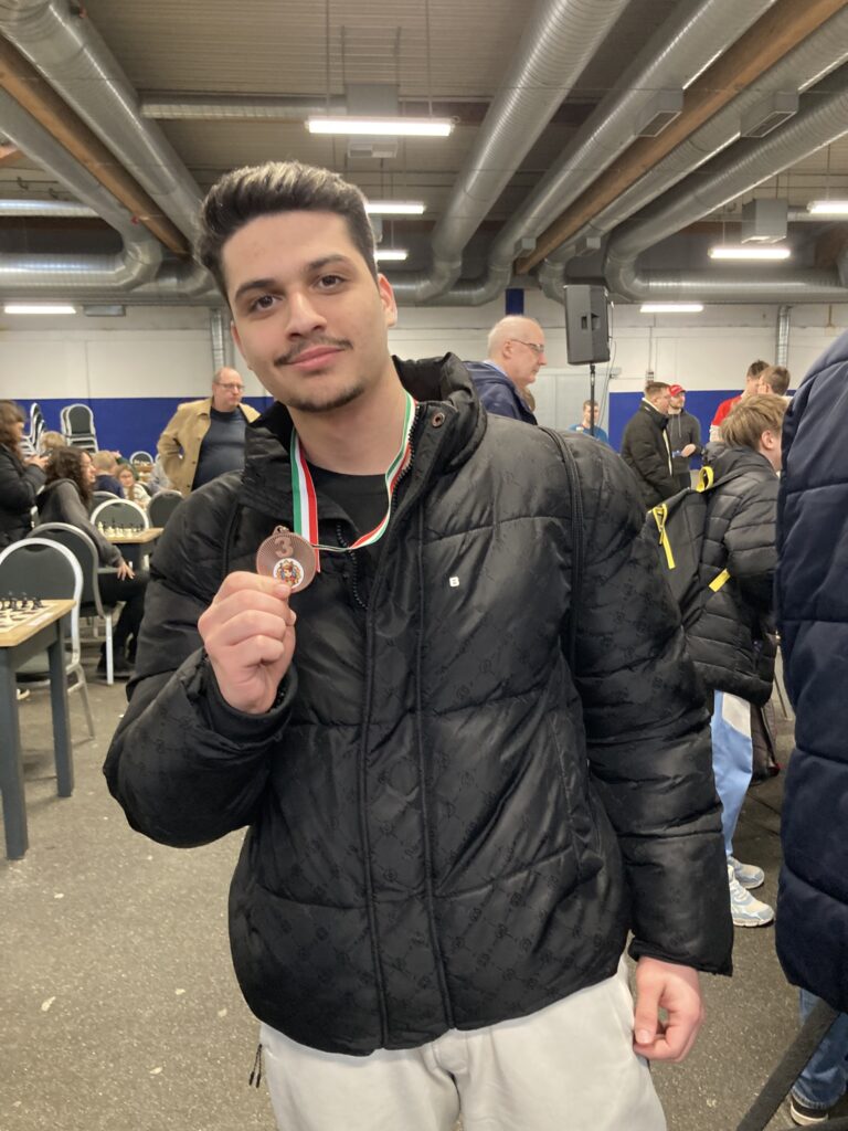 Für einen BKB-Spieler gab es sogar einen ganz besonderen persönlichen Moment des Triumphes: Abdulrazak Al Hawaj (4G25A) gewann am sechsten Brett 5 seiner 7 Partien und wurde dafür mit einer Bronzemedaille für seine gute Brettpunkteleistung ausgezeichnet. Die Überraschung und Freude darüber waren riesig – nicht nur bei ihm, sondern im ganzen Team. Abdulrazak: „Ich habe früher als Kind in Syrien schon Schach gespielt, dann hatte ich aufgehört, aber jetzt möchte ich wieder viel mehr Schach spielen!“