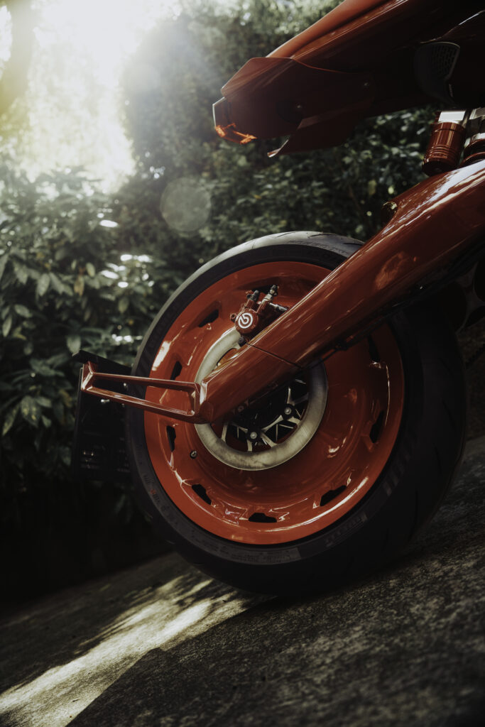 Das einzigartige Konzept erstreckt sich natürlich auch auf den exklusiven BRABUS Masterpiece Fahrersitz, der mit perfekt verarbeitetem Leder in der entsprechenden Farbgebung versehen ist. Das Ergebnis ist ein spektakulärer Look, der fast alle sichtbaren Teile des Motorrads umfasst.