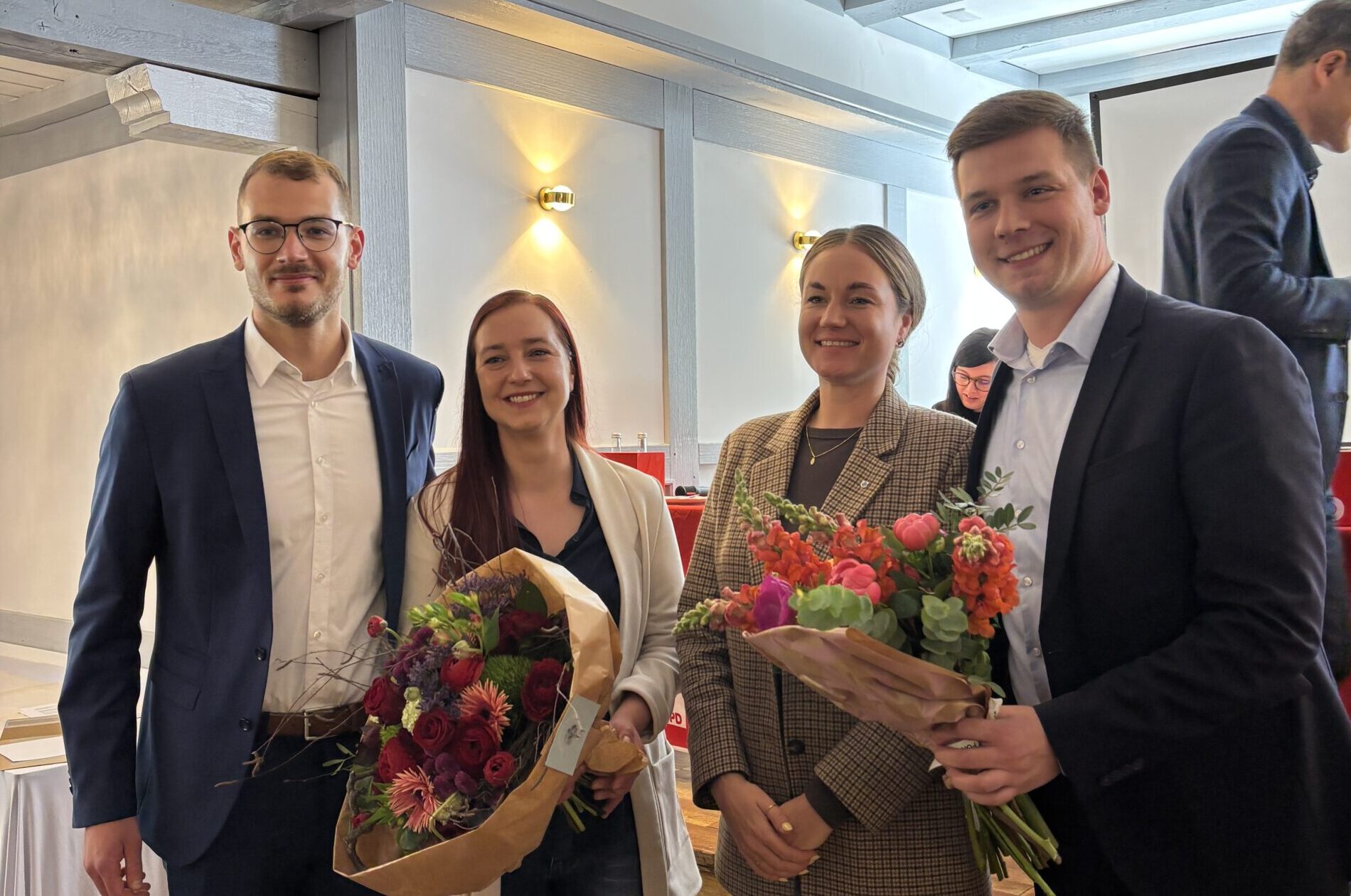 Nils König (stellv. SPD-Vorsitzender in Bottrop), Sonja Voßbeck, Eileen Peters-Beckmann (stellv. SPD-Vorsitzende in Bottrop) und Dustin Tix (SPD-Vorsitzender in Gladbeck