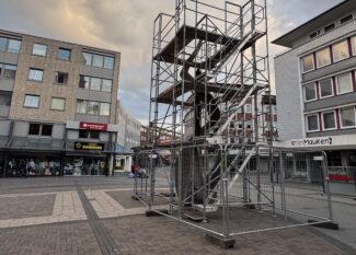 Eine der prägenden Skulpturen in der Innenstadt ist derzeit eingerüstet: Aufgrund von Witterungseinflüssen sowie leichter Beschädigungen wird die Skulptur „Das…