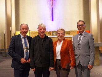 Oberbürgermeister Bernd Tischler, Dr. Gerd-Heinz Stevens, Bürgermeisterin Monika Budke und Kulturdezernent Jochen Brunnhofer. Die Stadt…