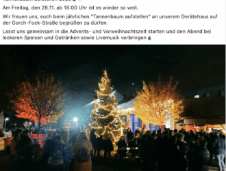 Traditionell wird der Weihnachtsmarkt auch 2025 wieder mit dem Anglühen eingeläutet. Am Donnerstag (13.11.) und…