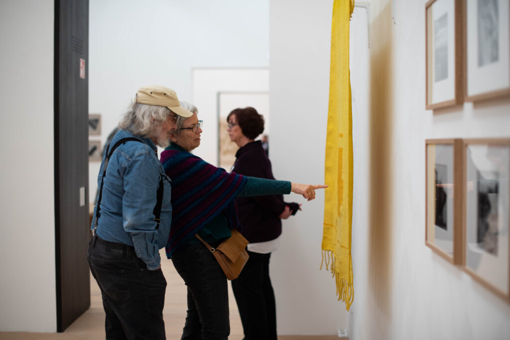 Die Kuratorin Linda Walther vermittelt bei ihrem Rundgang einen Überblick der neuen Sonderausstellung. Dabei verrät sie, welche Werke und Geschichten der Künstlerin zu ihren persönlichen Favoriten gehören und was Sheila Hicks Werk mit ihrem Lehrer Josef Albers verbindet.