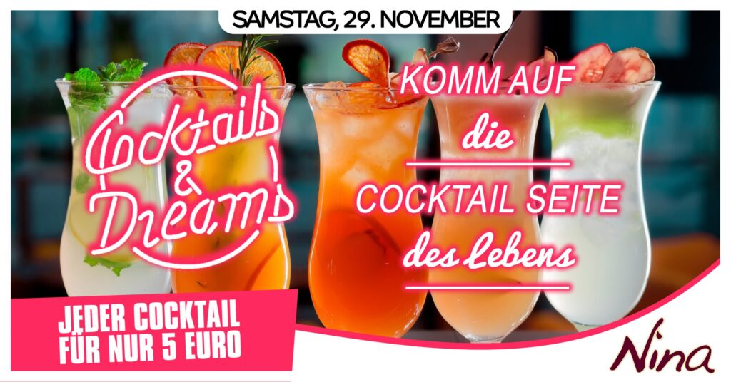 Am 29. November laden wir euch zur „Cocktails & Dreams Night“ in die NINA ein.
