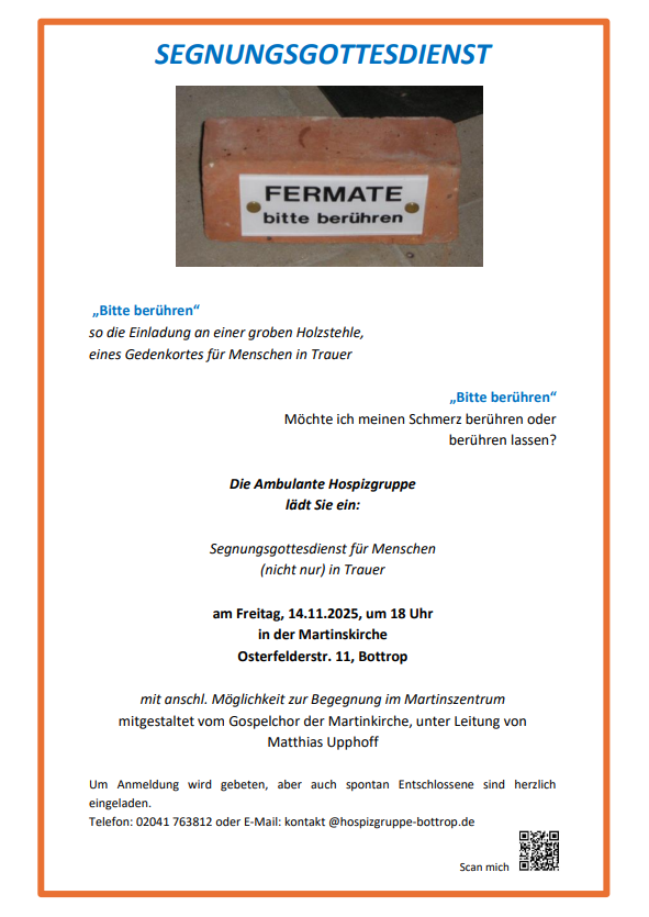Anmeldungen oder Rückfragen unter: Tel. 02041 763812, E-Mail: kontakt@hospizgruppe-bottrop.de