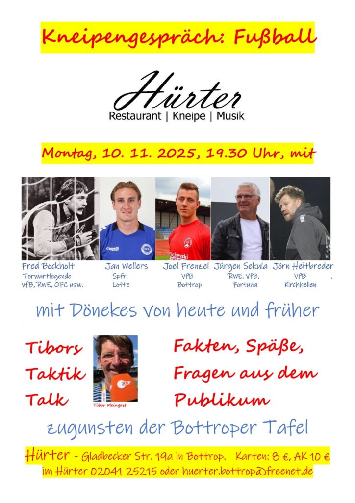 In Fortsetzung der Tradition von Hermanns Heimspiel bei Hürter (Hermann pausiert im Moment) gibt es wieder ein Kneipengespräch über Fußball in der Bottroper Kultkneipe an der Gladbecker Straße.