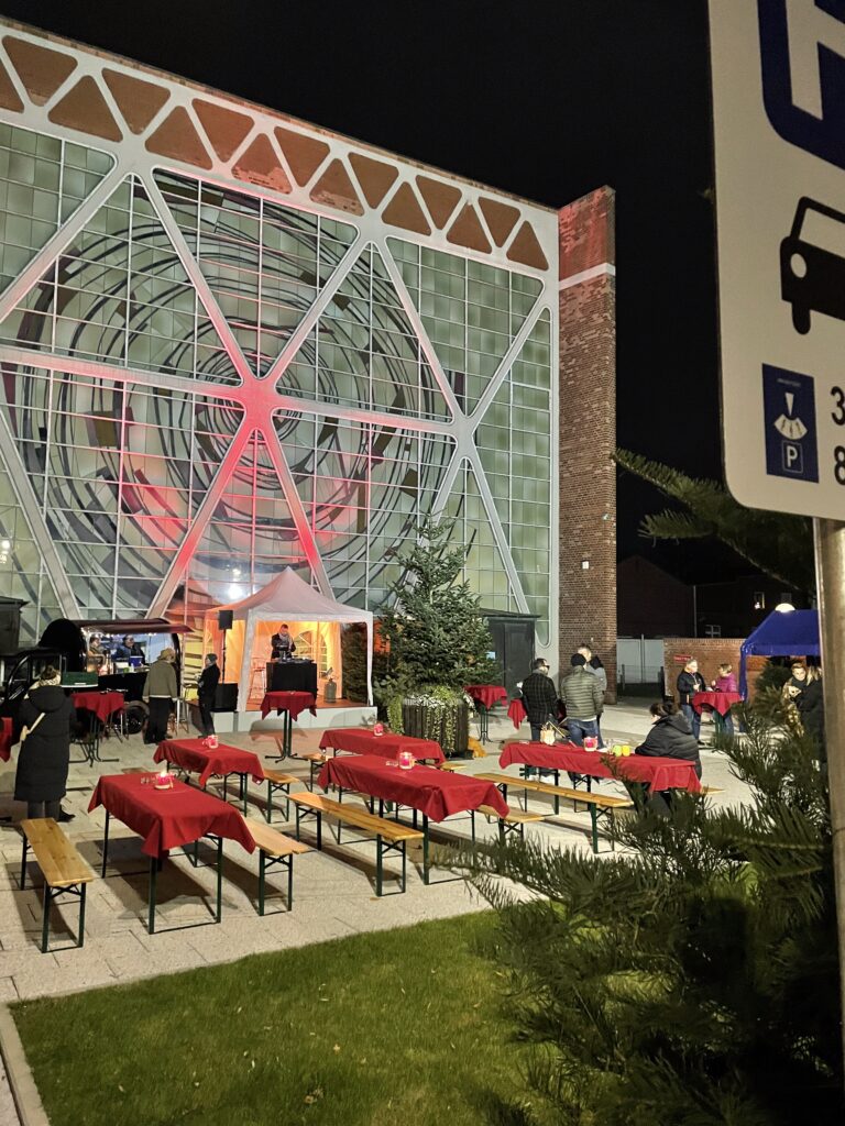 Indoor-Weihnachtsmarkt mit einigen Ausstellerinnen und Austellern, die unter anderem Handgemachtes, Gestricktes, Kunst, Lebensmittel und Delikatessen, Alkoholika sowie Geschenkideen, anbieten.