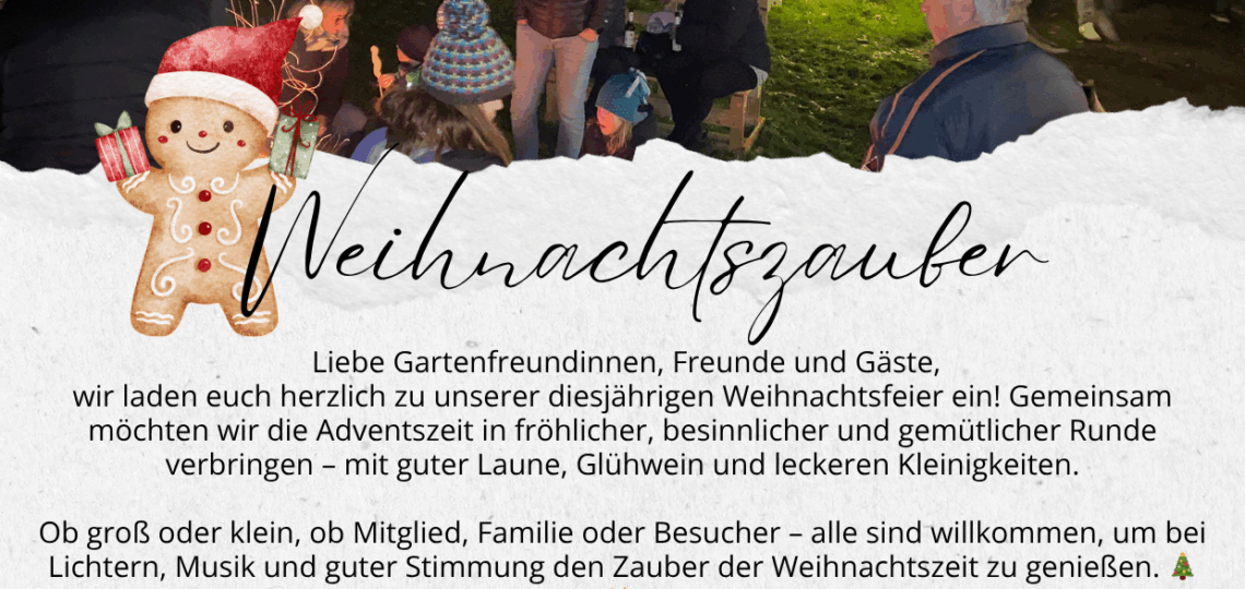 Datum: 29.11.2025 Startzeit: 14.00 Endzeit: 24.00 Veranstaltungsort: In der Kleingartenanlage Am Beckramsberg e.V., Im Beckram 58, 46242 Bottrop