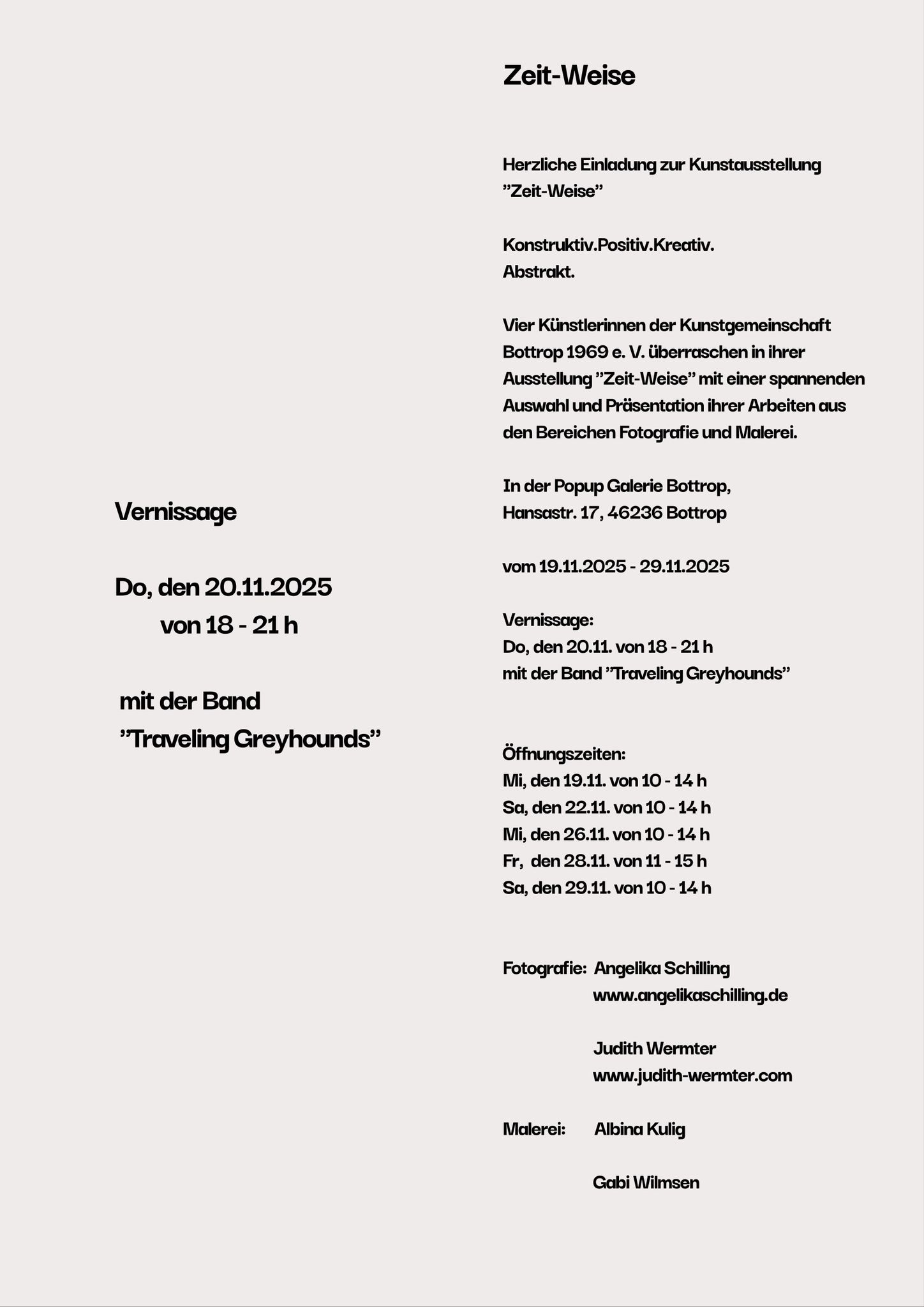 Datum: 22.11.2025 Beginnt um: Endet um: Location: Pop-Up-Galerie, Hansastraße 17, Bottrop Eintritt: kostenfrei Web: